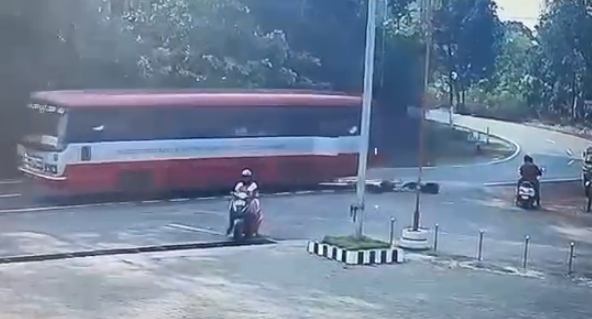 ಚಲಿಸುತ್ತಿದ್ದ ಬಸ್ ನಿಂದ ರಸ್ತೆಗೆ ಬಿದ್ದ ಸಹೋದರಿಯರು, ಅಪಾಯದಿಂದ ಪಾರು.