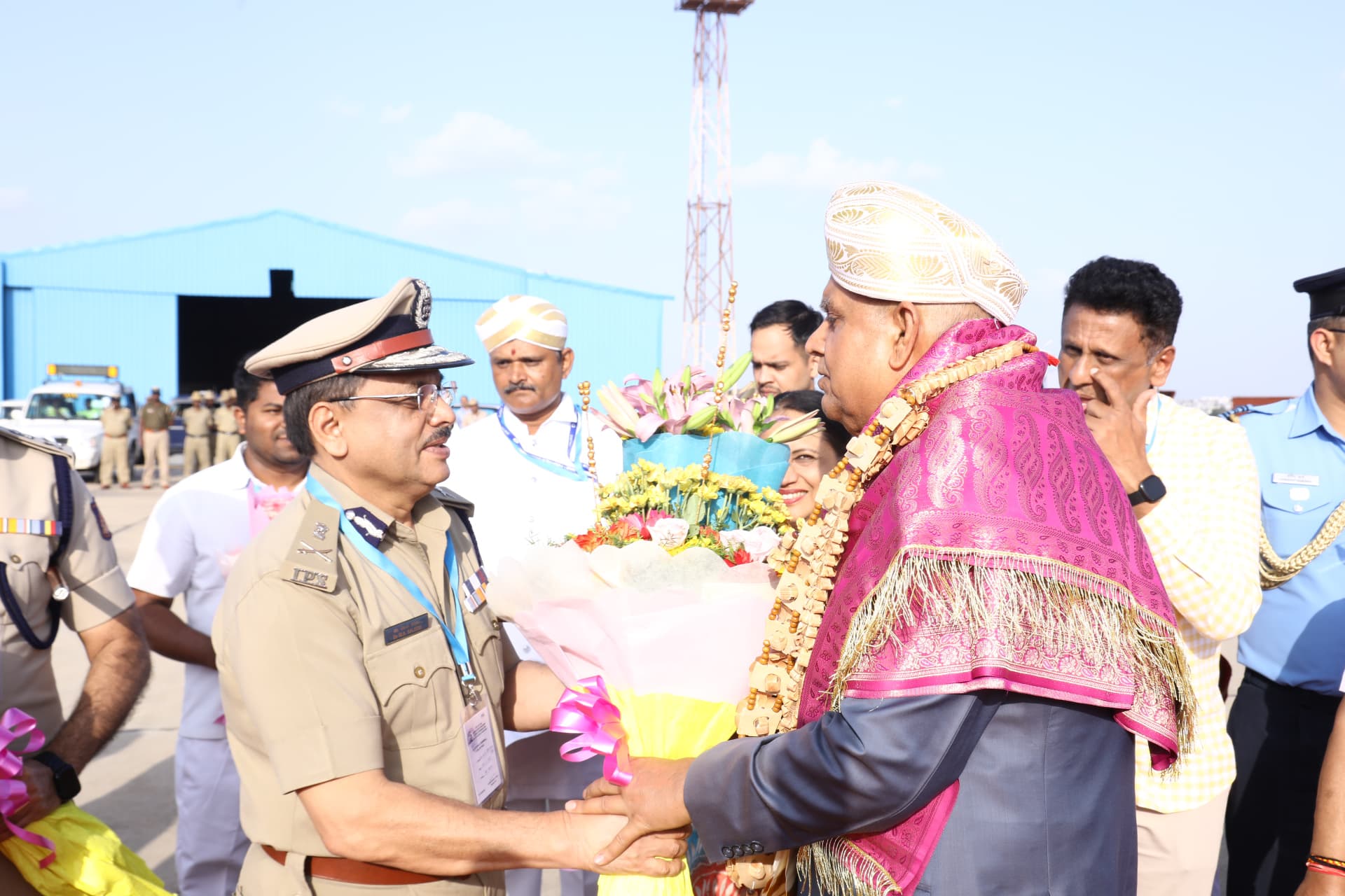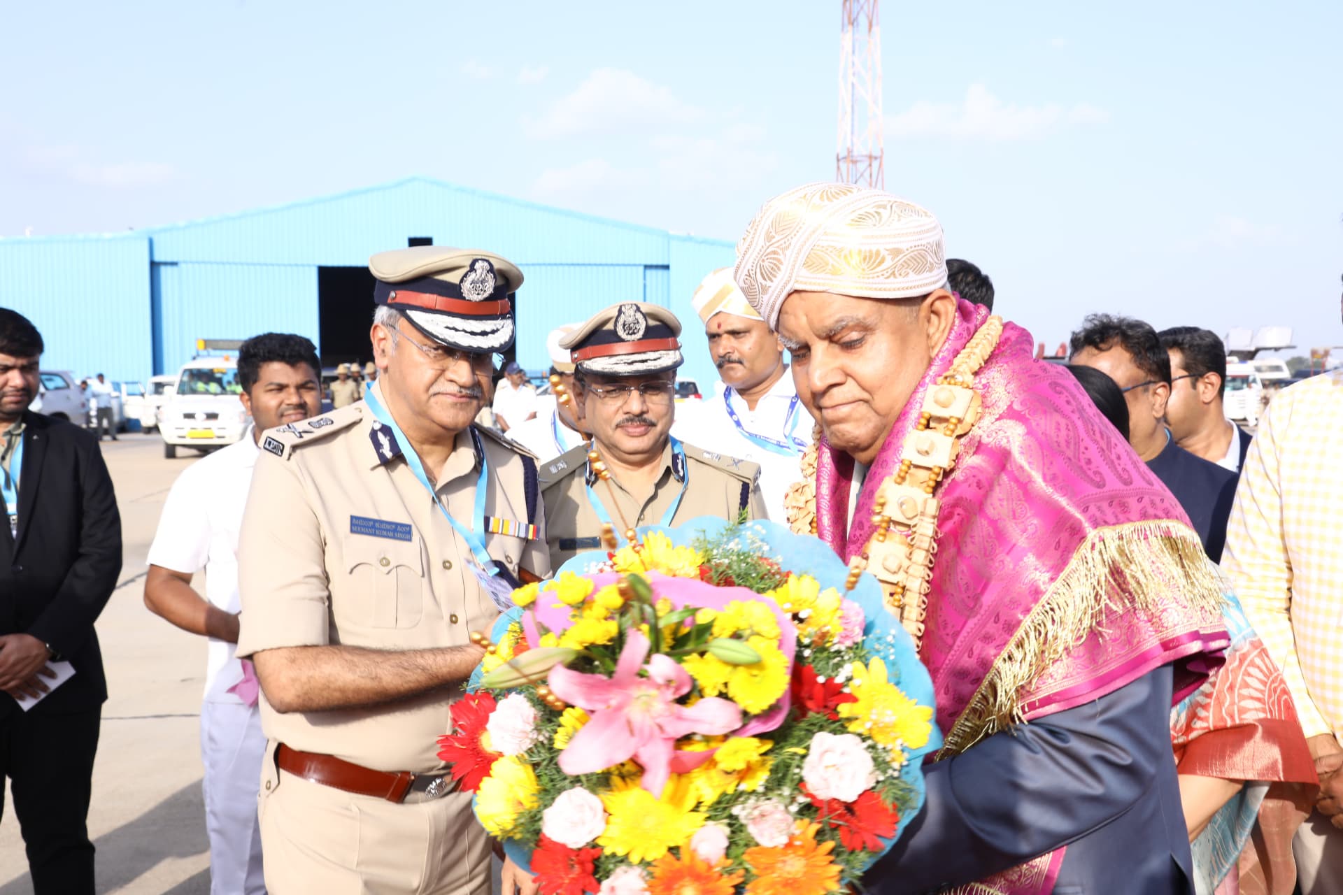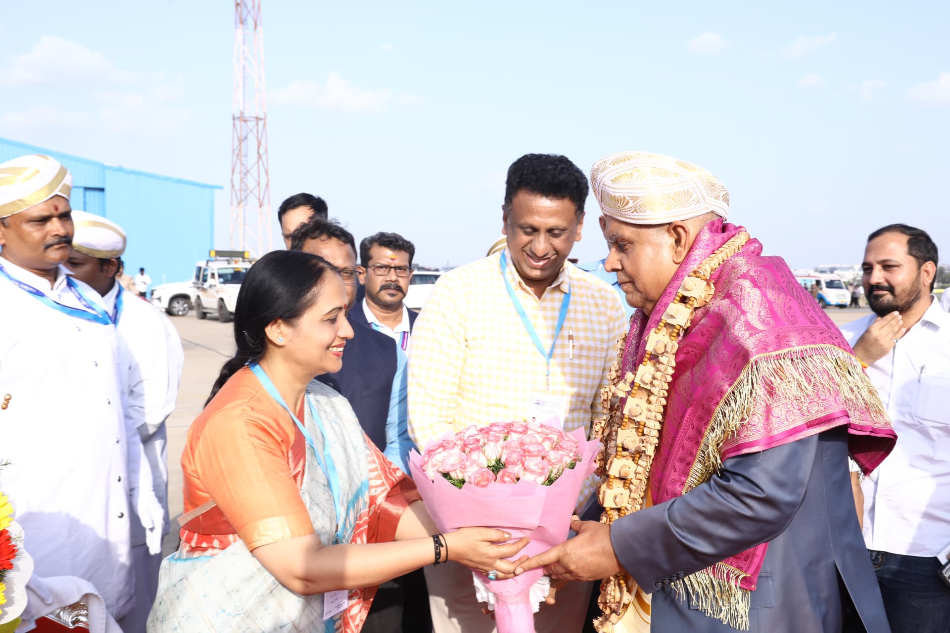 ಗೌರವಾನ್ವಿತ ಉಪ ರಾಷ್ಟ್ರಪತಿಗಳನ್ನು ರಾಜ್ಯದ ಗೌರವಾನ್ವಿತ ರಾಜ್ಯಪಾಲರಾದ ಥಾವರ್ ಚಂದ್ ಗೆಹ್ಲೋಟ್ ಅವರು ಹೂಗುಚ್ಚ ನೀಡಿ ಆತ್ಮೀಯವಾಗಿ ಸ್ವಾಗತಿಸಿದರು.