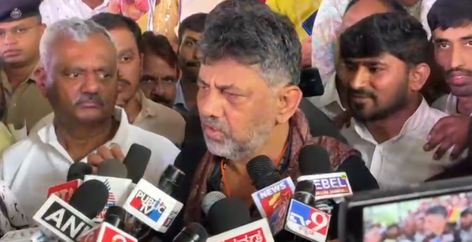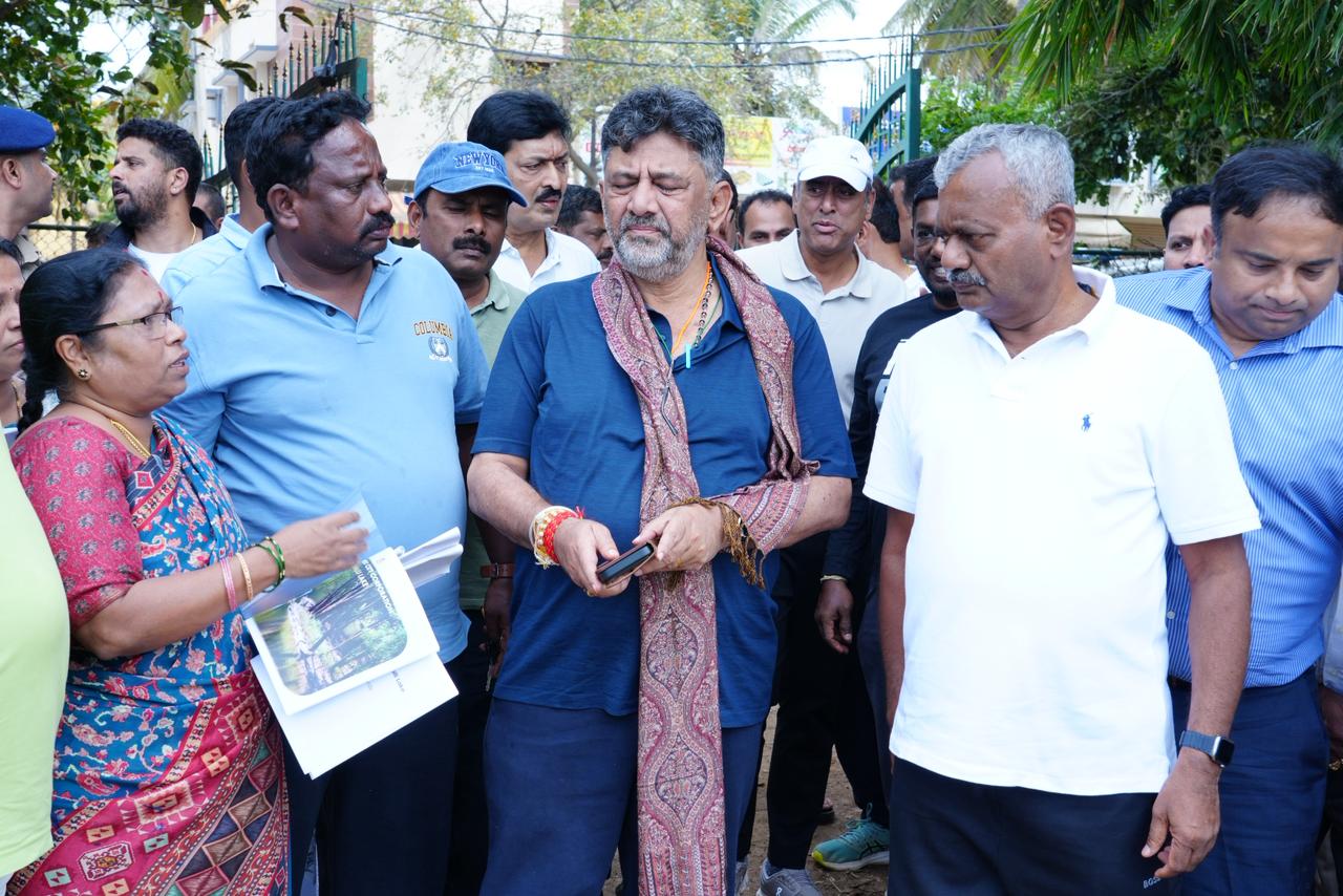 ಯಶವಂತಪುರ ವಿಧಾನಸಭೆ ಕ್ಷೇತ್ರದ ಹೇರೋಹಳ್ಳಿಯ ಭರತ್ ನಗರ ಗಾಂಧಿ ಉದ್ಯಾನವನದಲ್ಲಿ ಡಿಸಿಎಂ ಡಿ ಕೆ ಶಿವಕುಮಾರ್ ಅವರು ಶನಿವಾರ ಮಾಧ್ಯಮಗಳ ಪ್ರಶ್ನೆಗಳಿಗೆ ಪ್ರತಿಕ್ರಿಯೆ ನೀಡಿದರು.