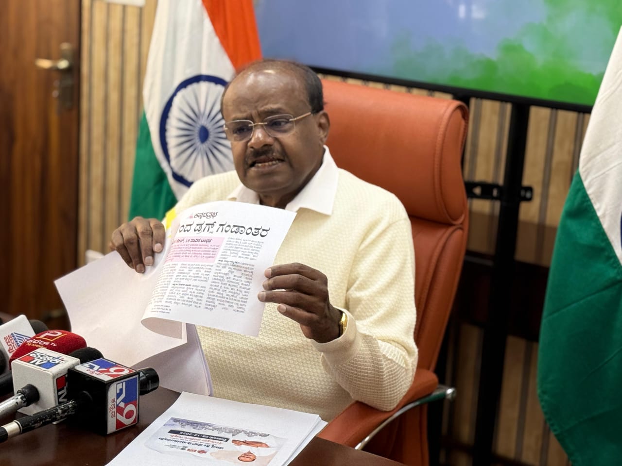 ನವದೆಹಲಿಯ ತಮ್ಮ ಗೃಹ ಕಚೇರಿಯಲ್ಲಿ ಸೋಮವಾರ ಬೆಳಗ್ಗೆ ಮಾಧ್ಯಮಗೋಷ್ಠಿಯಲ್ಲಿ ಮಾತನಾಡಿದ ಸಚಿವರು; ನಾನು ಕೊಟ್ಟಿದ್ದನ್ನು ಹೇಳುತ್ತೇನೆ. ಸಿದ್ದರಾಮಯ್ಯ ಅವರೇ.. ನೀವು ರೈತರಿಗೆ ಏನು ಕೊಡುಗೆ ಕೊಟ್ಟಿದ್ದೀರಿ ಎಂಬುದನ್ನು ಹೇಳಿ. ಮಂಡ್ಯಕ್ಕೆ ನಿಮ್ಮ ಕೊಡುಗೆ ಏನು? ಹಿಂದಿನ ಐದು ವರ್ಷ ಆಡಳಿತದಲ್ಲಿ 200ಕ್ಕೂ ಹೆಚ್ಚು ರೈತರು ಮಂಡ್ಯದಲ್ಲಿ ಸರಣಿ ಆತ್ಮಹತ್ಯೆ ಮಾಡಿಕೊಂಡಿದ್ದೇ ನಿಮ್ಮ ಕೊಡುಗೆ. ಅಂಥ ಕಷ್ಟಕಾಲದಲ್ಲಿ ನಾನು ಅಧಿಕಾರಕ್ಕೆ ಬಂದ ಮೇಲೆ ಅದೇ ಜಿಲ್ಲೆಯ ರೈತರ 900 ಕೋಟಿ ಸಾಲ ಮನ್ನಾ ಮಾಡಿದೆ. ಇದಕ್ಕಿಂತ ಕೊಡುಗೆ ಬೇಕಾ? ನಿಮ್ಮ ಕಾಲದಲ್ಲಿ ರೈತರ ಜೀವ ಹೋಯಿತು, ನನ್ನ ಕಾಲದಲ್ಲಿ ಜೀವ ಉಳಿಯಿತು. ಇದು ನಿಮಗೆ ಗೊತ್ತಿರಲಿ ಎಂದು ವಾಗ್ದಾಳಿ ನಡೆಸಿದರು.