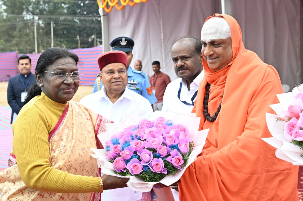 ರಾಷ್ಟ್ರಪತಿ ದ್ರೌಪದಿ ಮುರ್ಮು ಅವರಿಗೆ ಕೃತಜ್ಞತೆ ಸಲ್ಲಿಸಿದ ಕೇಂದ್ರ ಸಚಿವರು ಸುತ್ತೂರು ಕ್ಷೇತ್ರ-ದೇವೇಗೌಡರ ಕುಟುಂಬದ ಬಾಂಧವ್ಯ ಸ್ಮರಿಸಿದ ಸಚಿವರು ವೇದಿಕೆ ಮೇಲೆ ಸಚಿವರಿಗೆ ಜನ್ಮದಿನ ಶುಭ ಕೋರಿದ ರಾಷ್ಟ್ರಪತಿಗಳು, ರಾಜ್ಯಪಾಲರು, ಪೂಜ್ಯರು **