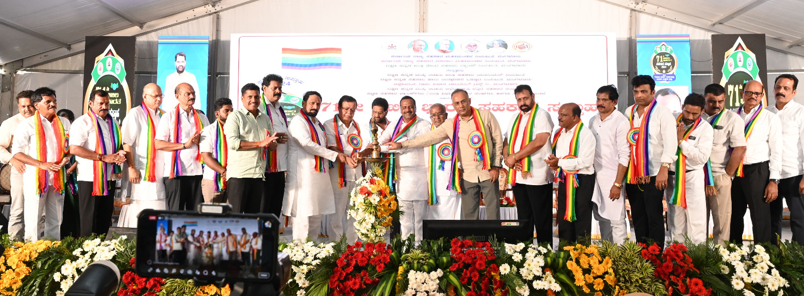 ವೇದಿಕೆಯಲ್ಲಿ ಮಾಜಿ ಉಪಮುಖ್ಯಮಂತ್ರಿ ಲಕ್ಷ್ಮಣ ಸವದಿ, ರಾಜ್ಯ ಸಹಕಾರ ಮಹಾಮಂಡಳದ