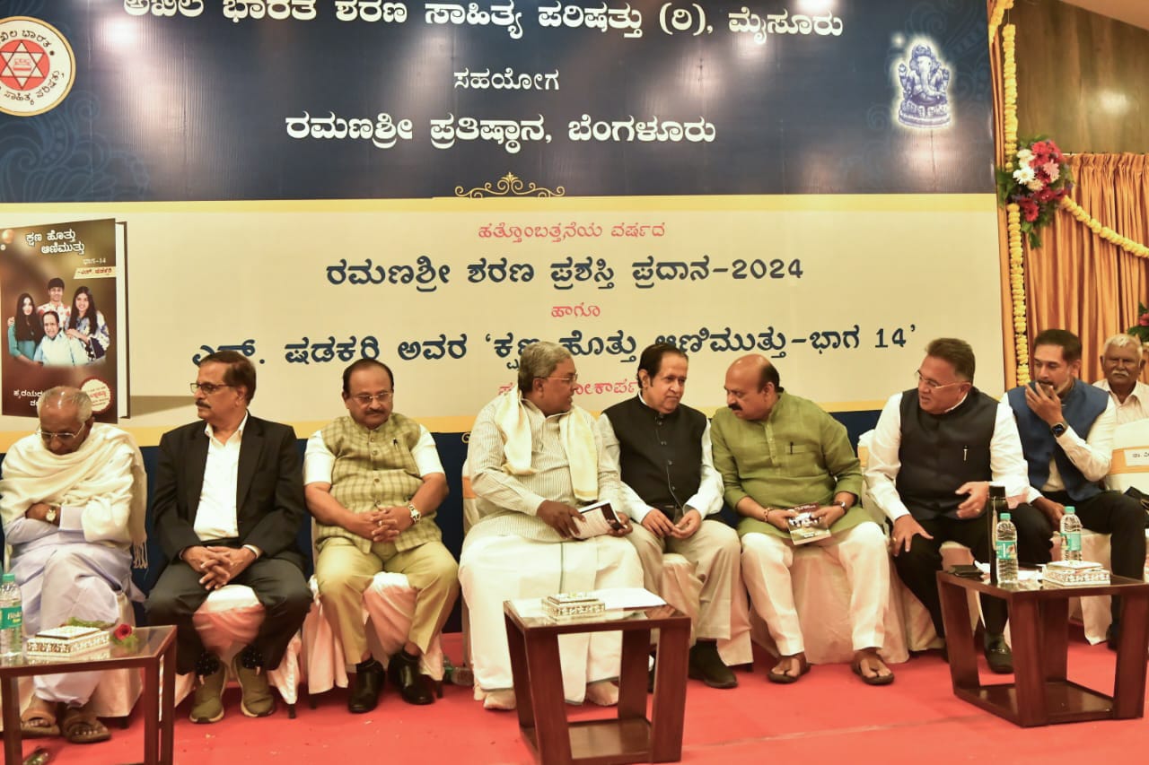 ಇಂದು ಅಖಿಲ ಭಾರತ ಶರಣ ಸಾಹಿತ್ಯ ಪರಿಷತ್ತು, ಮೈಸೂರು ಸಹಯೋಗ ರಮಣಶ್ರೀ ಪ್ರತಿಷ್ಠಾನ, ಬೆಂಗಳೂರು ಇವರ ವತಿಯಿಂದ ಹೊಟೇಲ್ ರಮಣಶ್ರೀ ಇಲ್ಲಿ ಆಯೋಜಿಸಿದ್ದ 19ನೇ ವರ್ಷದ ರಮಣಶ್ರೀ ಶರಣ ಪ್ರಶಸ್ತಿ ಪ್ರದಾನ ಹಾಗೂ ಎಸ್. ಷಡಕ್ಷರಿ ಅವರ ಕ್ಷಣ ಹೊತ್ತು ಆಣಿಮುತ್ತು ಭಾಗ-14ರ ಪುಸ್ತಕ ಲೋಕಾರ್ಪಣೆ ಕಾರ್ಯಕ್ರಮದಲ್ಲಿ ಪಾಲ್ಗೊಂಡು ಮಾತನಾಡಿದರು.