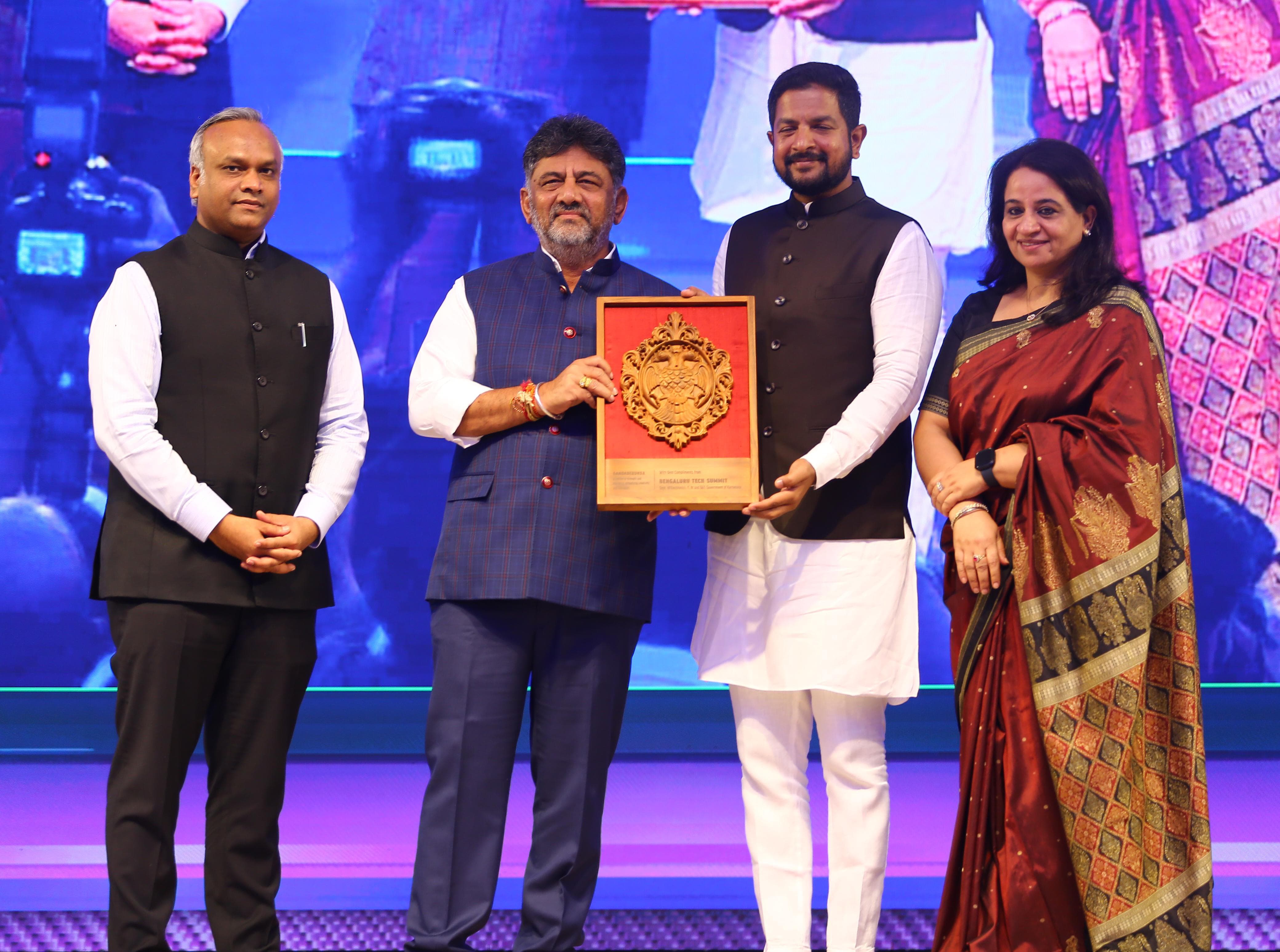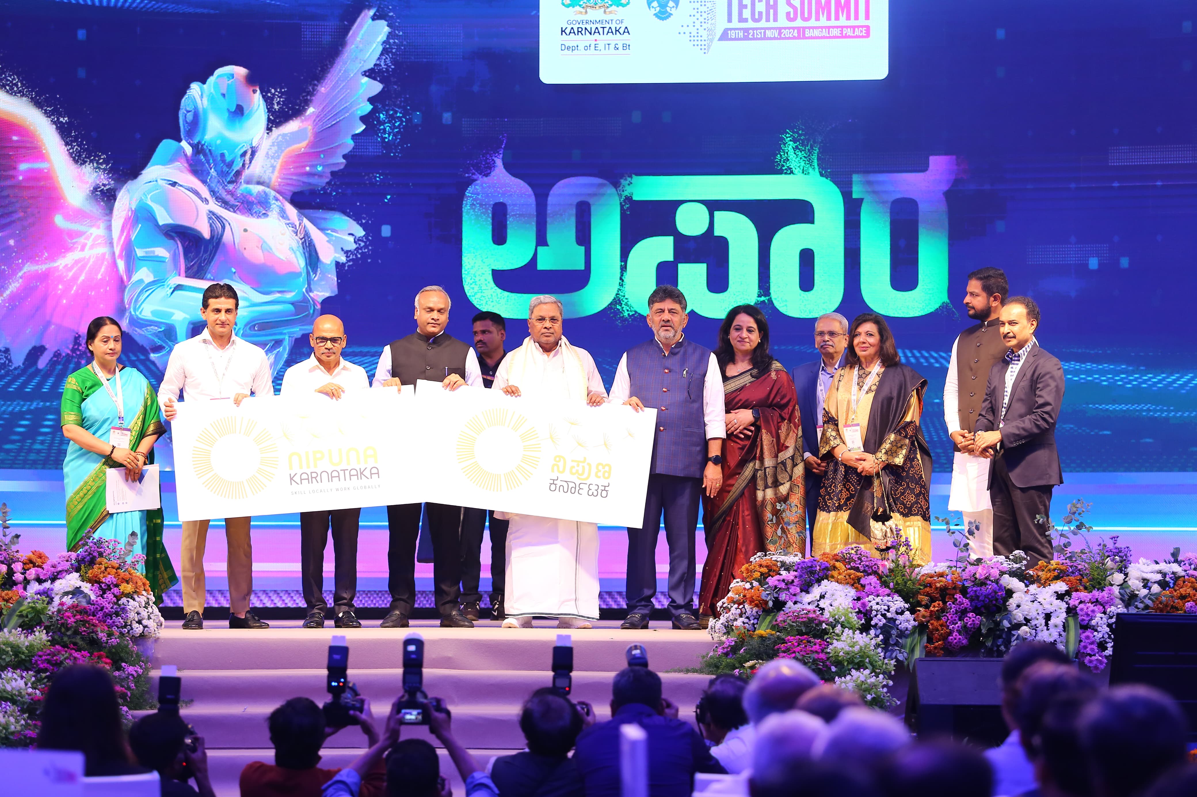 ನಗರದ ಅರಮನೆ ಮೈದಾನದಲ್ಲಿ ಮಂಗಳವಾರ ನಡೆದ 27 ನೇ ಆವೃತಿಯ ಬೆಂಗಳೂರು ಟೆಕ್ ಸಮ್ಮಿಟ್ -2024 ರ ಉದ್ಘಾಟನಾ ಸಮಾರಂಭದಲ್ಲಿ ಡಿಸಿಎಂ ಡಿ. ಕೆ. ಶಿವಕುಮಾರ್ ಅವರು ಮಾತನಾಡಿದರು. ಇದೇ ವೇಳೆ ಮುಖ್ಯಮಂತ್ರಿ ಸಿದ್ದರಾಮಯ್ಯ ಅವರ ಜೊತೆಗೂಡಿ ʼನಿಪುಣ ಕರ್ನಾಟಕʼ ಯೋಜನೆಯನ್ನು ಲೋಕಾರ್ಪಣೆ ಮಾಡಲಾಯಿತು ಹಾಗೂ ನವೋದ್ಯಮ ಸಾಧಕರನ್ನು ಸನ್ಮಾನಿಸಲಾಯಿತು.