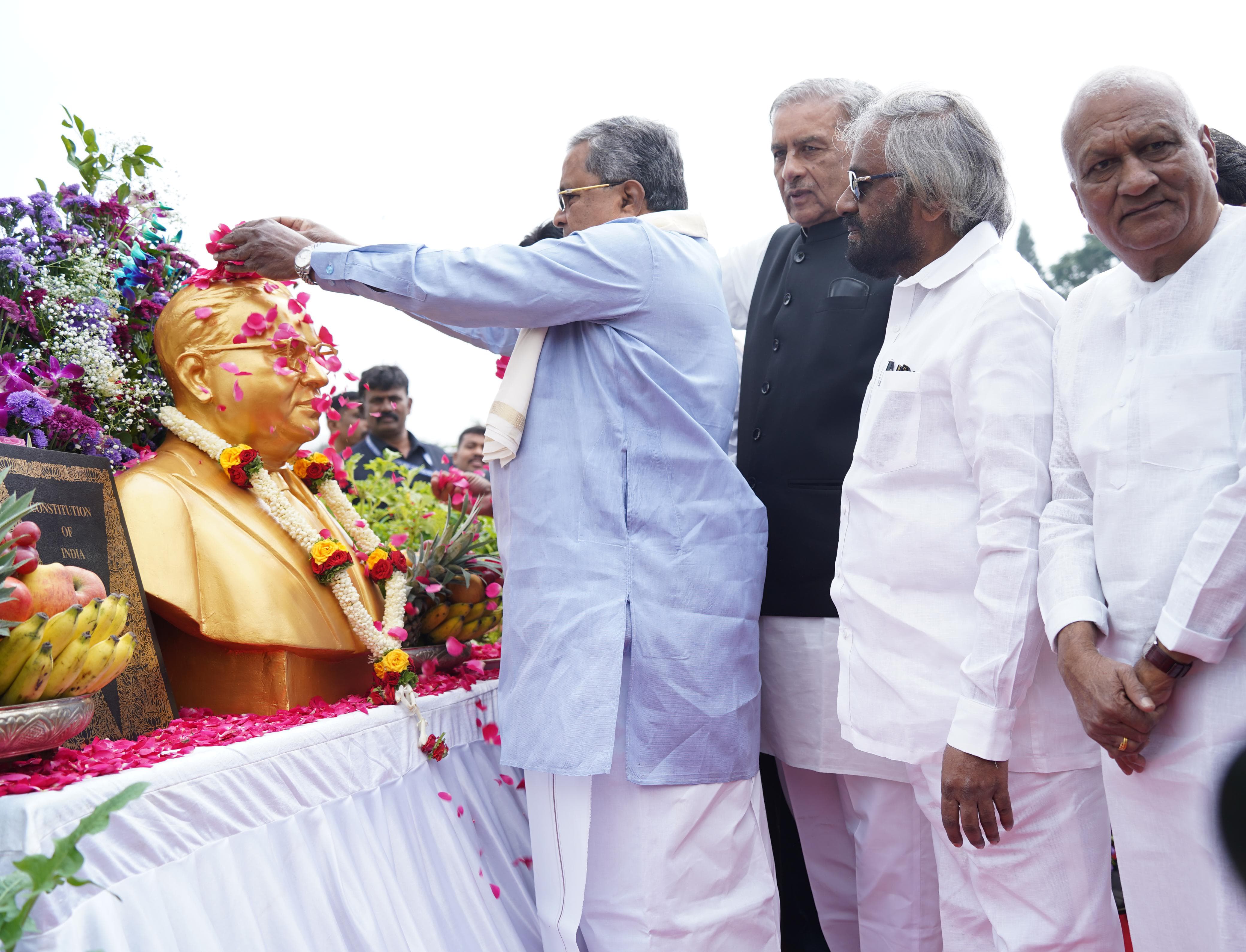 ಇದಕ್ಕೂ ಮೊದಲು ವಿಧಾನಸೌಧದ ಎದುರಿಗೆ ಇರುವ ಅಂಬೇಡ್ಕರ್ ಪ್ರತಿಮೆಗೆ ಪುಷ್ಪಾರ್ಚನೆ ಮಾಡಿ ವಂದಿಸಿದರು.