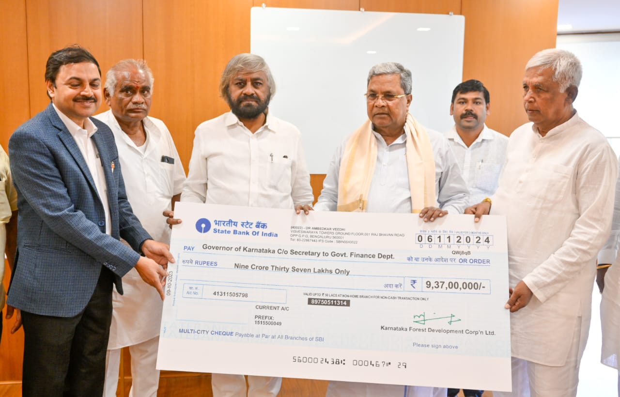 ಕರ್ನಾಟಕ ರಾಜ್ಯ ಅರಣ್ಯ ಅಭಿವೃದ್ಧಿ ನಿಗಮದಿಂದ ಸರ್ಕಾರಕ್ಕೆ ಸಲ್ಲಿಸಲಾದ 9 ಕೋಟಿ ರೂ. ಲಾಭಾಂಶದ ಚೆಕ್ಕನ್ನು ಹಾಗೂ 2 ಕೋಟಿ ರೂಪಾಯಿ ಮೊತ್ತದ ಮುಖ್ಯಮಂತ್ರಿಗಳ ಪರಿಹಾರ ನಿಧಿ ಚೆಕ್ಕನ್ನು ಸ್ವೀಕರಿಸಿದರು.