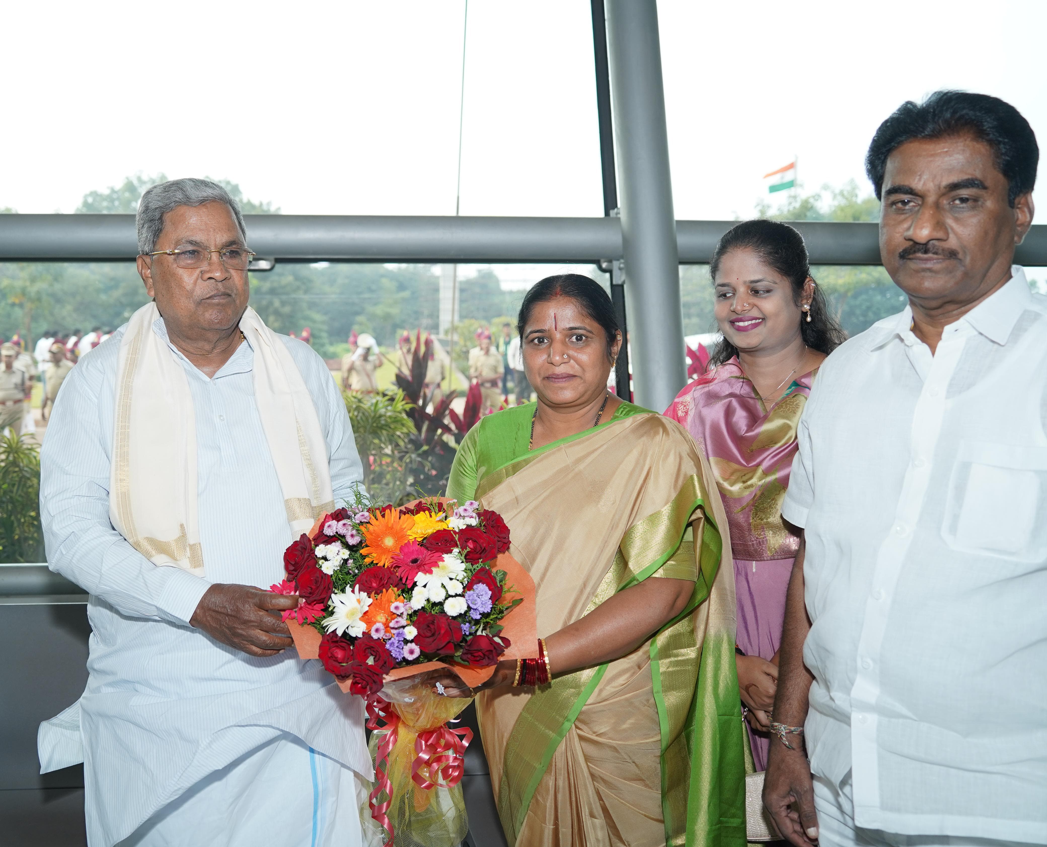 ಸಂಡೂರು ಕ್ಷೇತ್ರದ ನೂತನ ಶಾಸಕಿ ಅನ್ನಪೂರ್ಣಮ್ಮ ಅವರು ಬಳ್ಳಾರಿ ಪ್ರವಾಸಕ್ಕೆಂದು ಆಗಮಿಸಿದ ಮುಖ್ಯಮಂತ್ರಿ ಸಿದ್ದರಾಮಯ್ಯ ಅವರನ್ನು ಜಿಂದಾಲ್ ವಿಮಾನ ನಿಲ್ದಾಣದಲ್ಲಿ ಸ್ವಾಗತಿಸಿ ಧನ್ಯವಾದ ಅರ್ಪಿಸಿದರು. ಮುಖ್ಯಮಂತ್ರಿಗಳು ಅನ್ನಪೂರ್ಣಮ್ಮ ಅವರಿಗೆ ಶುಭ ಹಾರೈಸಿದರು.