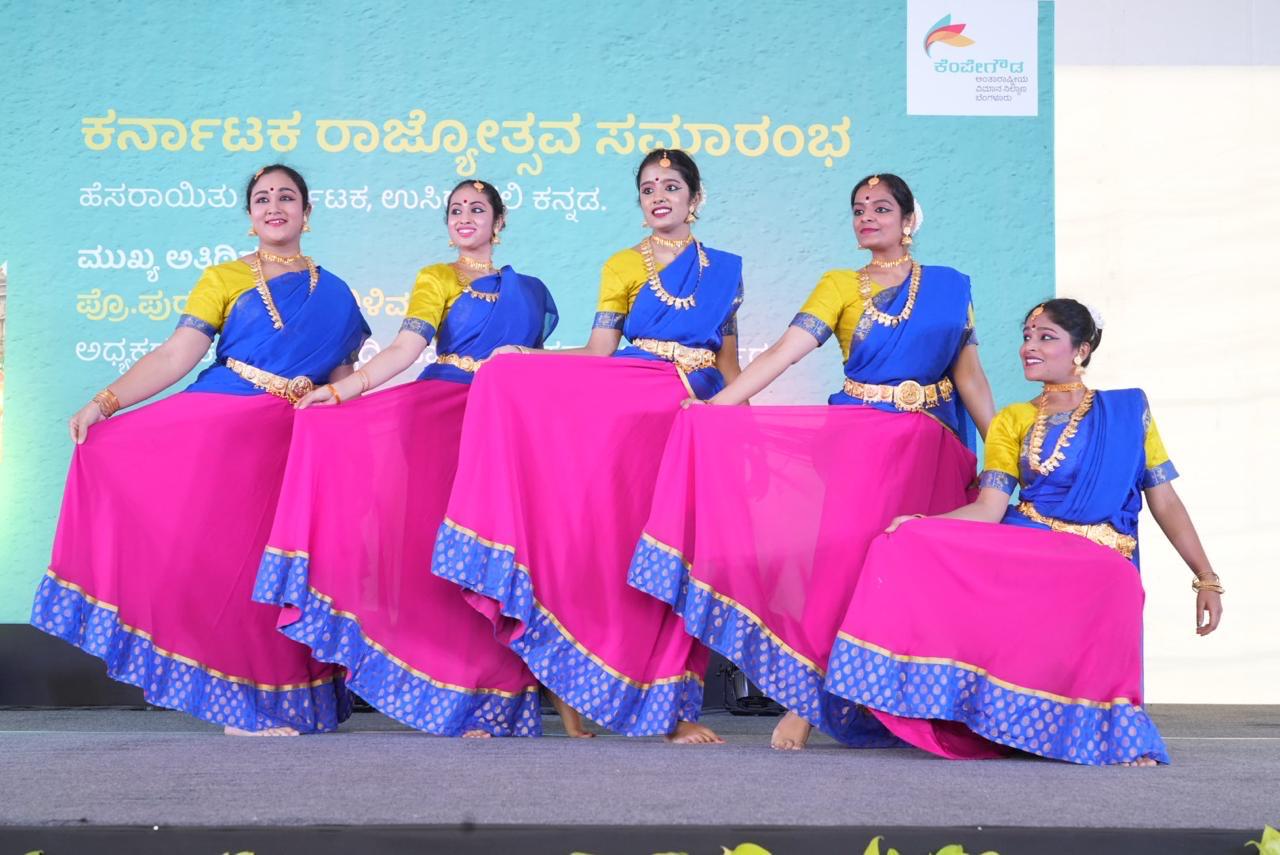 ಕರ್ನಾಟಕದ ಸಾಂಪ್ರದಾಯಿಕ ಜಾನಪದ ಪ್ರಕಾರಗಳನ್ನು ಒಟ್ಟುಗೂಡಿಸುವ ಅದ್ಭುತ ನೃತ್ಯ ಪ್ರದರ್ಶನ, ವರ್ಣರಂಜಿತ ವೇಷಭೂಷಣ, ಸಂಗೀತ ಮತ್ತು ಕ್ರಿಯಾತ್ಮಕ ಚಲನೆಗಳು ಪ್ರೇಕ್ಷಕರನ್ನು ಆಕರ್ಷಿಸಿತು. ಇದಷ್ಟೇ ಅಲ್ಲದೆ, ಮಹಿಳಾ ಸ್ವ ಉದ್ಯೋಗಿಗಳೇ ನಿರ್ಮಿಸಿದ ಉಡುಪುಗಳ ಮಾರಾಟಕ್ಕೂ ಮಳಿಗೆಗಳನ್ನು ತೆರೆಯಲು ಟರ್ಮಿನಲ್ ೨ ಮುಂಭಾಗ ಅವಕಾಶ ಕಲ್ಪಿಸಿಕೊಡಲಾಗಿತ್ತು. ಈ ಮಳಿಗೆಗಳು ಮೈಸೂರು ರೇಷ್ಮೆ, ಉಡುಪಿ ಸೀರೆಗಳು, ಬಿದ್ರಿವೇರ್ ಮತ್ತು ಇಳಕಲ್ ಸೀರೆಗಳಂತಹ ಸೊಗಸಾದ ವಸ್ತುಗಳನ್ನು ಪ್ರದರ್ಶನ ಹಾಗೂ ಮಾರಾಟ ಮಾಡಲಾಯಿತು. ಪ್ರವಾಸಿಗರಿಗೆ ಕರ್ನಾಟಕವನ್ನು ವ್ಯಾಖ್ಯಾನಿಸುವ ಕರಕುಶಲತೆ ಮತ್ತು ಸಂಪ್ರದಾಯದ ಬಗ್ಗೆ ಕಣ್ತುಂಬಿಕೊಳ್ಳಲು ಅವಕಾಶ ದೊರೆಯಿತು.