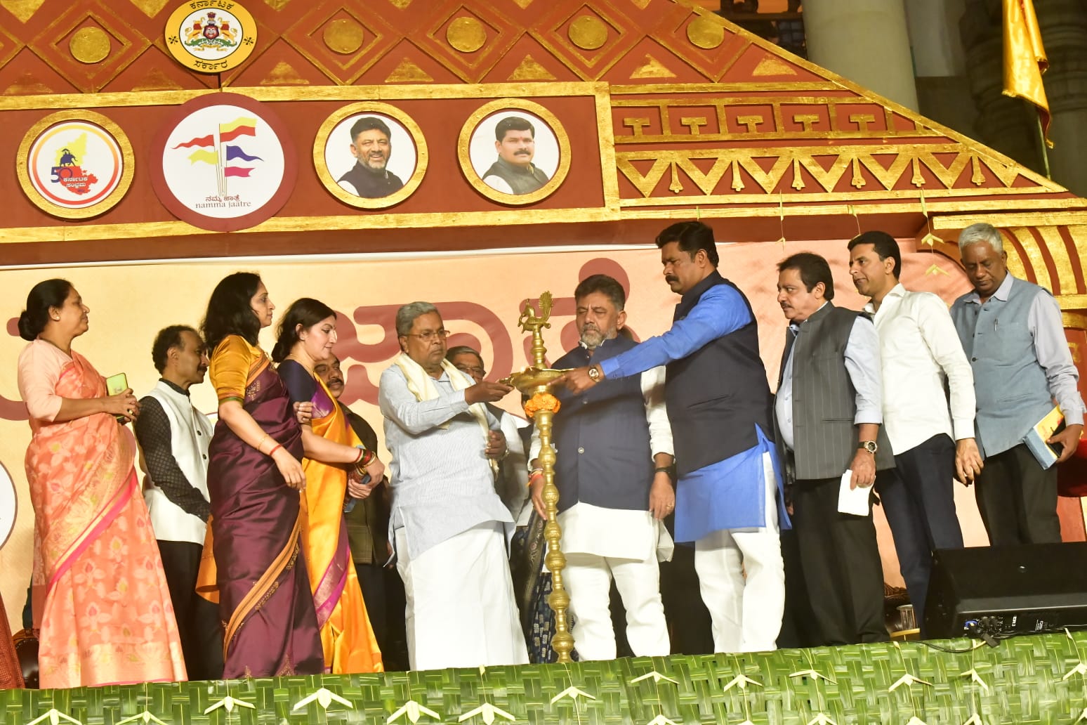 ಮುಖ್ಯಮಂತ್ರಿ ಸಿದ್ದರಾಮಯ್ಯ ಅವರು ಬೆಂಗಳೂರು ಹಬ್ಬದ ಅಂಗವಾಗಿ ವಿಧಾನಸೌಧ ಮುಂಭಾಗದ ಗ್ರಾಂಡ್ ಸ್ಟೆಪ್ಸ್ ನಲ್ಲಿ ಕನ್ನಡ ಮತ್ತು ಸಂಸ್ಕೃತಿ ಇಲಾಖೆ ಆಯೋಜಿಸಿದ್ದ "ನಮ್ಮ ಜಾತ್ರೆ" ಕಾರ್ಯಕ್ರಮದ ರಥಯಾತ್ರೆ ಮತ್ತು ಜನಪದ ಕಲಾ ತಂಡಗಳ ಮೆರವಣಿಗೆಗೆ ಚಾಲನೆ ನೀಡಿದರು.
