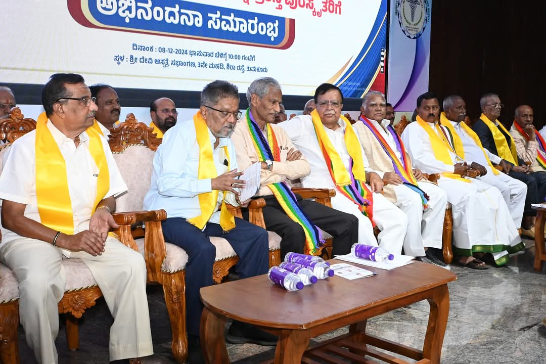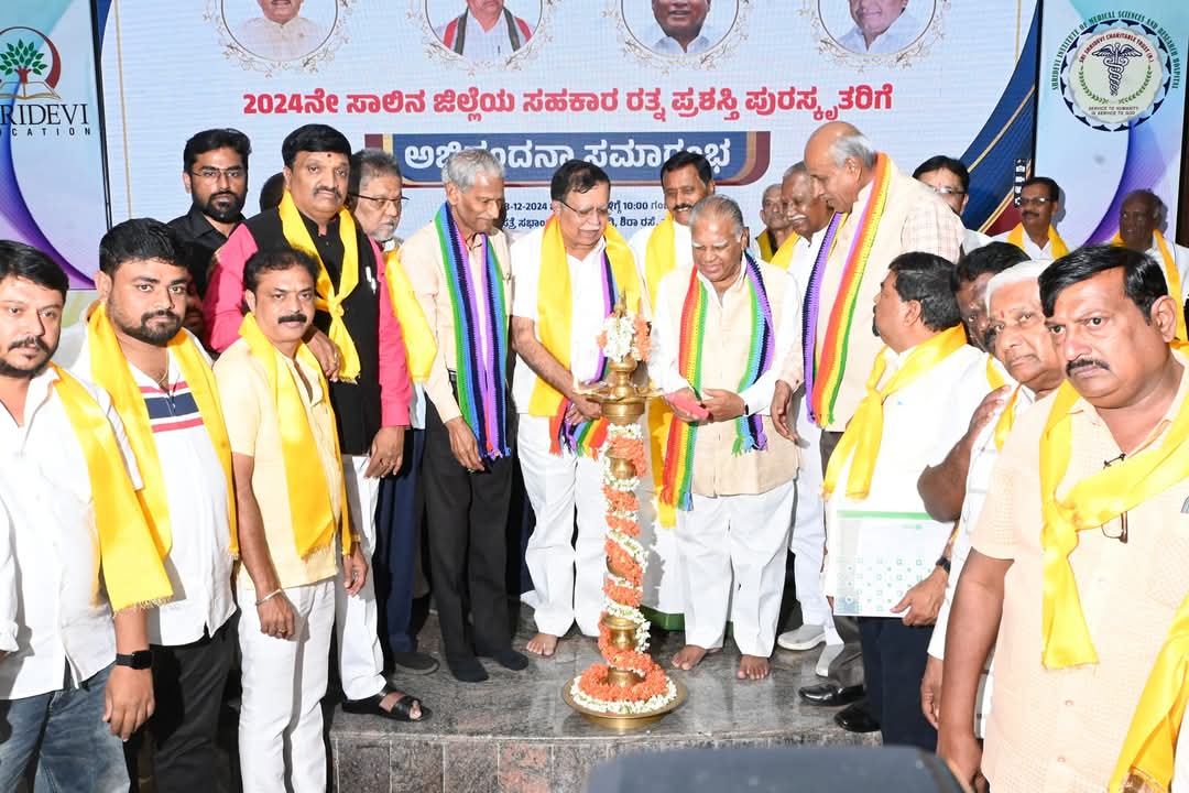 ತುಮಕೂರು ನಗರದ ಶ್ರೀದೇವಿ ಆಸ್ಪತ್ರೆ ಸಭಾಂಗಣದಲ್ಲಿ ತುಮಕೂರು ನಗರದ ಶ್ರೀದೇವಿ ಆಸ್ಪತ್ರೆ ಸಭಾಂಗಣದಲ್ಲಿ ತುಮಕೂರು ಜಿಲ್ಲೆಯ ಹಿಂದುಳಿದ ವರ್ಗಗಳ ಒಕ್ಕೂಟದ ವತಿಯಿಂದ ಹಮ್ಮಿಕೊಂಡಿದ್ದ 2024ನೇ ಸಾಲಿನ ಜಿಲ್ಲೆಯ ಸಹಕಾರ ರತ್ನ ಪ್ರಶಸ್ತಿ ಪುರಸ್ಕೃತರಿಗೆ ಅಭಿನಂದನಾ ಸಮಾರಂಭದಲ್ಲಿ ಸಹಕಾರ ಸಚಿವರಾದ ಕೆ ಎನ್ ರಾಜಣ್ಣ ಭಾಗವಹಿಸಿದ್ದರು.