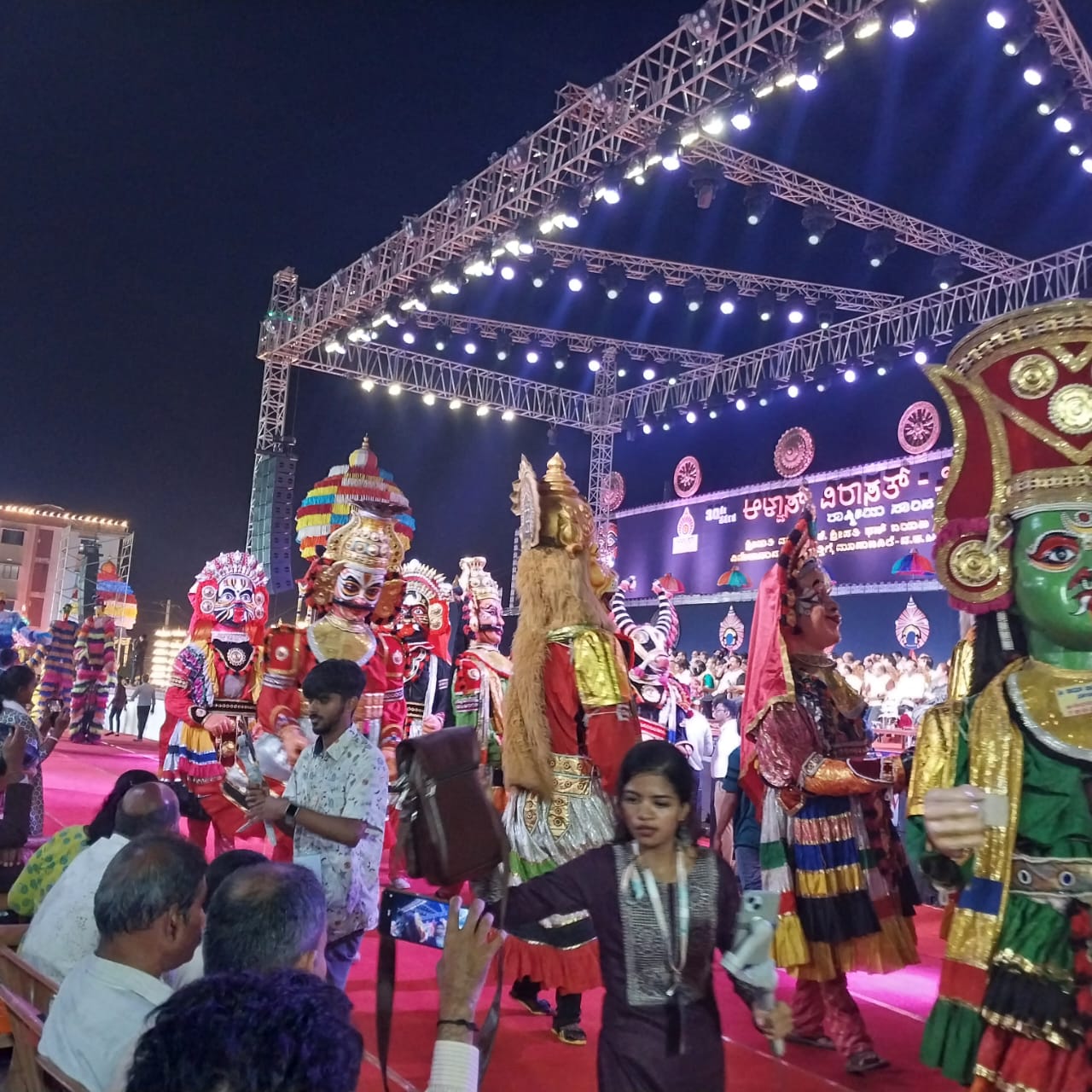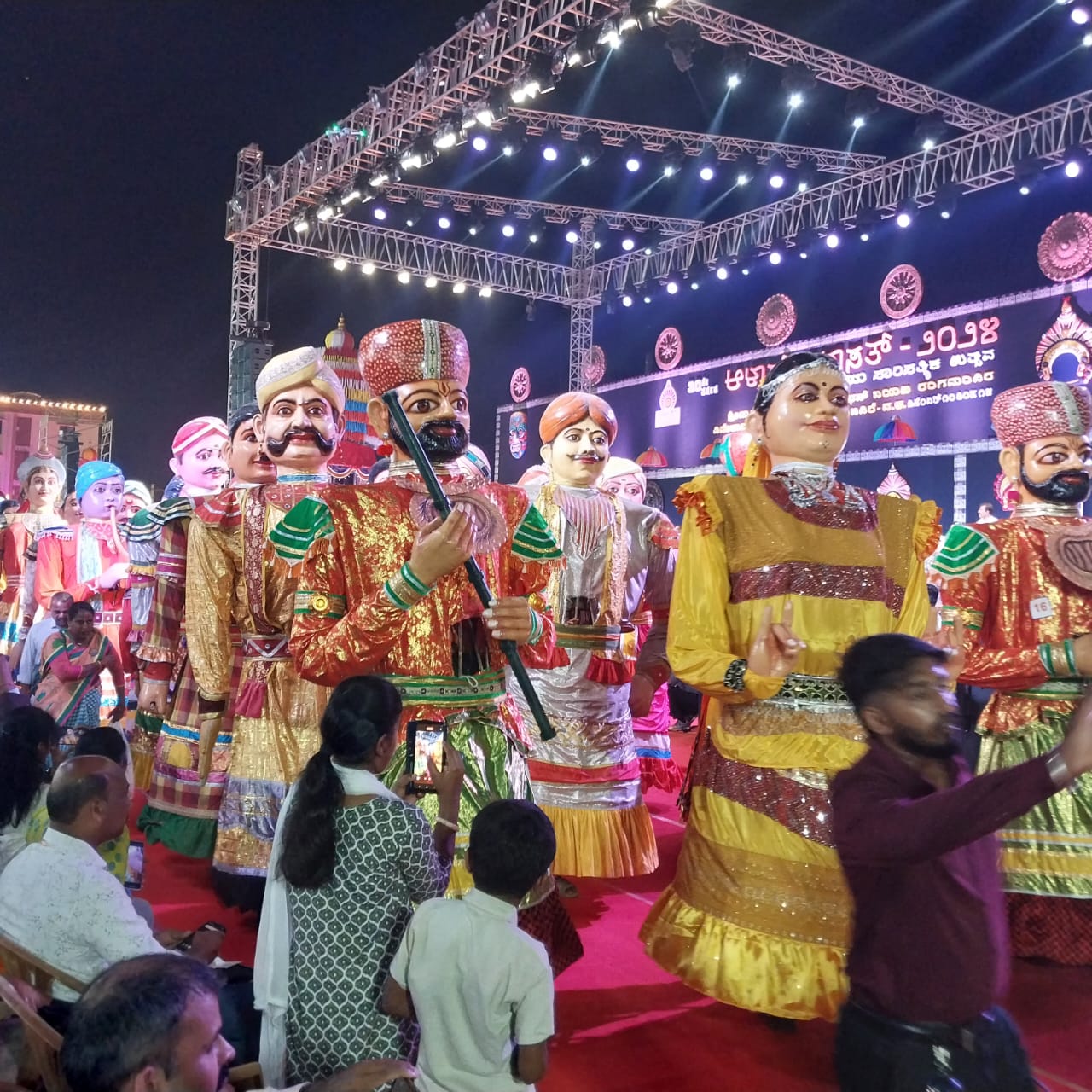ಶಂಖ, ದಾಸಯ್ಯ, ಕೊಂಬು, ರಣ ಕಹಳೆ, ಕಹಳೆ, ಕಾಲ ಭೈರವ, ಕೊರಗಡೋಲು, ಸ್ಯಾಕ್ಸೋಫೋನ್, ಬ್ಲಾಕ್ ಎನಿಮಲ್, ನಂದಿ ಧ್ವಜ, ಸುಗ್ಗಿ ಕುಣಿತ, ಶ್ರೀರಾಮ, ಪರಶುರಾಮ, ಘಟೋತ್ಕಜ , ಊರಿನ ಚೆಂಡೆ, ತಟ್ಟಿರಾಯ, ನಾದಸ್ವರ ತಂಡ, ಕೊಡೆಗಳು, ಪೂರ್ಣಕುಂಭ, ಲಂಗ ದಾವಣಿ ತರುಣಿಯರು, ಅಪ್ಸರೆಯರು, ಯಕ್ಷಗಾನ ವೇಷ, ಗೂಳಿ ಮತ್ತು ಕಟ್ಟಪ್ಪ, ಗೊರವರ ಕುಣಿತ, ಕಿಂದರಿ ಜೋಗಿ, ಸೋಮನ ಕುಣಿತ, ಆಂಜನೇಯ ಮತ್ತು ವಾನರ ಸೇನೆ, ಮಹಾಕಾಳೆಶ್ವರ, ಶಿವ, ಮರಗಾಲು, ತಮಟೆ ವಾದನ, ಆಂಜನೇಯ, ಮಹಿಳಾ ಪಟ ಕುಣಿತ, ಕಂಬಳ ಚಿತ್ರಣ, ಹುಲಿವೇಷ , ತೆಯ್ಯಮ್, ಚಿಟ್ಟೆ ಮೇಳ, ಶಿವ ಮತ್ತು ಅಘೋರಿಗಳು, ಕಿಂಗ್ ಕಾಂಗ್, ಶಿಲ್ಪಾ ಗೊಂಬೆ ಬಳಗ, ಆಳ್ವಾಸ್ ಗೊಂಬೆ ಬಳಗ, ಚೈನೀಸ್ ಡ್ರ್ಯಾಗನ್, ಚೈನಾ ಲಯನ್, ಬ್ಯಾಂಡ್ ಸೆಟ್, ಆಳ್ವಾಸ್ ಕಾರ್ಟೂನ್ಸ್, ಸ್ನೇಹ ಗೊಂಬೆ ಬಳಗ, ಚಿಲಿಪಿಲಿ ಬೊಂಬೆ, ವಂಶಿಕಾ ಗೊಂಬೆ ಬಳಗ, ಬಿದಿರೆ ಮೂಡುಬಿದಿರೆ ಗೊಂಬೆಗಳು, ಶೆಟ್ಟಿ ಬೊಂಬೆಗಳು, ಶಾರದಾ ಆರ್ಟ್ಸ್ ಗೊಂಬೆ, ಶಾರದಾ ಆರ್ಟ್ಸ್ ಚೆಂಡೆ, ಟಾಲ್ ಮ್ಯಾನ್, ಹಿಮ ಕರಡಿ ಗೊಂಬೆ, ಚಿರತೆ ಗೊಂಬೆ, ಏರ್ ಬಲೂನ್ ಬೊಂಬೆ, ಕರಡಿ ಗೊಂಬೆ, ಗಜಹುಲಿ, ಕಾಟಿ, ಗಣಪತಿ, ನರಸಿಂಹ, ಹುಲಿ, ಬೋಳಾರ್ ಮತ್ತು ಟೀಮ್ ನರ್ತನ, ವಾರ್ ಕ್ರಾಫ್ಟ್, ಚಿಟ್ಟೆ, ಸಿಂಗಳೀಕ, ಗಣಪತಿ, ಜೋಡಿ ಸಿಂಹ, ಜೋಡಿ ಜಿಂಕೆ, ಚಿತ್ರದುರ್ಗ ಬ್ಯಾಂಡ್, ಪೂಜಾಕುಣಿತ, ಬೇಡರ ಕುಣಿತ, ಮಹಿಳೆಯರ ಕೋಲಾಟ, ಹಗಲುವೇಷ, ಕೋಳಿಗಳು, ನಾಸಿಕ್ ಬ್ಯಾಂಡ್, ಮೀನುಗಳು, ಕಾರ್ಟೂನ್ಸ್, ಪುರವಂತಿಕೆ, ವೀರಭದ್ರನ ಕುಣಿತ, ಜಗ್ಗಳಿಕೆ ಮೇಳ, ಪಟದ ಕುಣಿತ, ಕೊಂಚಾಡಿ ಚೆಂಡೆ, ಶ್ರೀಲಂಕಾ ಕಲಾವಿದರು, ಶ್ರೀಲಂಕಾದ ಮುಖವಾಡ, ವೀರಗಾಸೆ, ಕರಡಿ ಮಜಲು, ಕಂಸಾಳೆ, ಪುರುಷರ ನಗಾರಿ, ಮಹಿಳೆಯರ ನಗಾರಿ, ದಪ್ಪು, ತಿರುವಾದಿರ, ಡೊಳ್ಳು ಕುಣಿತ, ಪಂಚವಾದ್ಯ, ಎಂಜೆಲ್ಸ್, ಎಲ್ವ್ಸ್, ಸಂತಾಕ್ಲಾಸ್, ನಾಸಿಕ್ ಬ್ಯಾಂಡ್, ಶಿಂಗಾರಿ ಮೇಳ, ಅರ್ಧ ನಾರೀಶ್ವರ, ಪೂಕಾವಡಿ, ಕೇರಳದ ಚಿಟ್ಟೆ, ಕಥಕ್ಕಳಿ ವೇಷ, ಕೇರಳದ ಅರೆನಾ ವೇಷ, ಕೇರಳದ ಕಮಲ ವೇಷ, ತಮಿಳುನಾಡಿನ ನೃತ್ಯ, ಶೃಂಗಾರಿ ಮೇಳ, ಕೇರಳದ ದೇವರ ವೇಷ, ಕೇರಳದ ದೇವರ ವೇಷ, ಕೇರಳದ ಡಿಜಿಟಲ್ ವೇಷ, ತೆಯ್ಯಮ್ ಉಡುಪಿ, ಬ್ಲೂ ಬ್ರಾಸ್ ಬ್ಯಾಂಡ್, ಕೋಳಿ ಉಡುಪಿ, ಮೀನುಗಳು ಉಡುಪಿ, ಕಾಮಿಡಿಯನ್ಸ್, ಗರುಡ , ದಪ್ಪು, ಕ್ಯಾರಲ್, ಡೊಳ್ಳು ಕುಣಿತವು ಸಾಗಿಬಂತು.