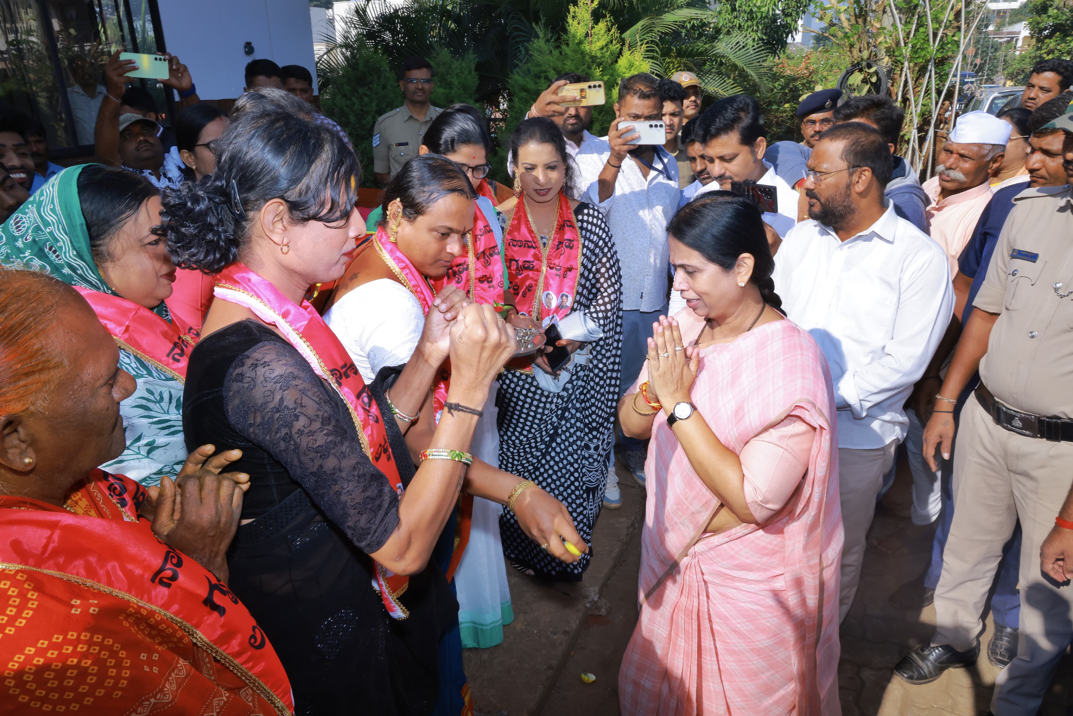 ಮಂಗಳಮುಖಿಯರು ಸಚಿವೆ ಲಕ್ಷ್ಮೀ ಹೆಬ್ಬಾಳಕರ್ ಅವರಿಗೆ ದೃಷ್ಟಿ ತೆಗೆದು ಶುಭ ಹಾರೈಸಿದರು.