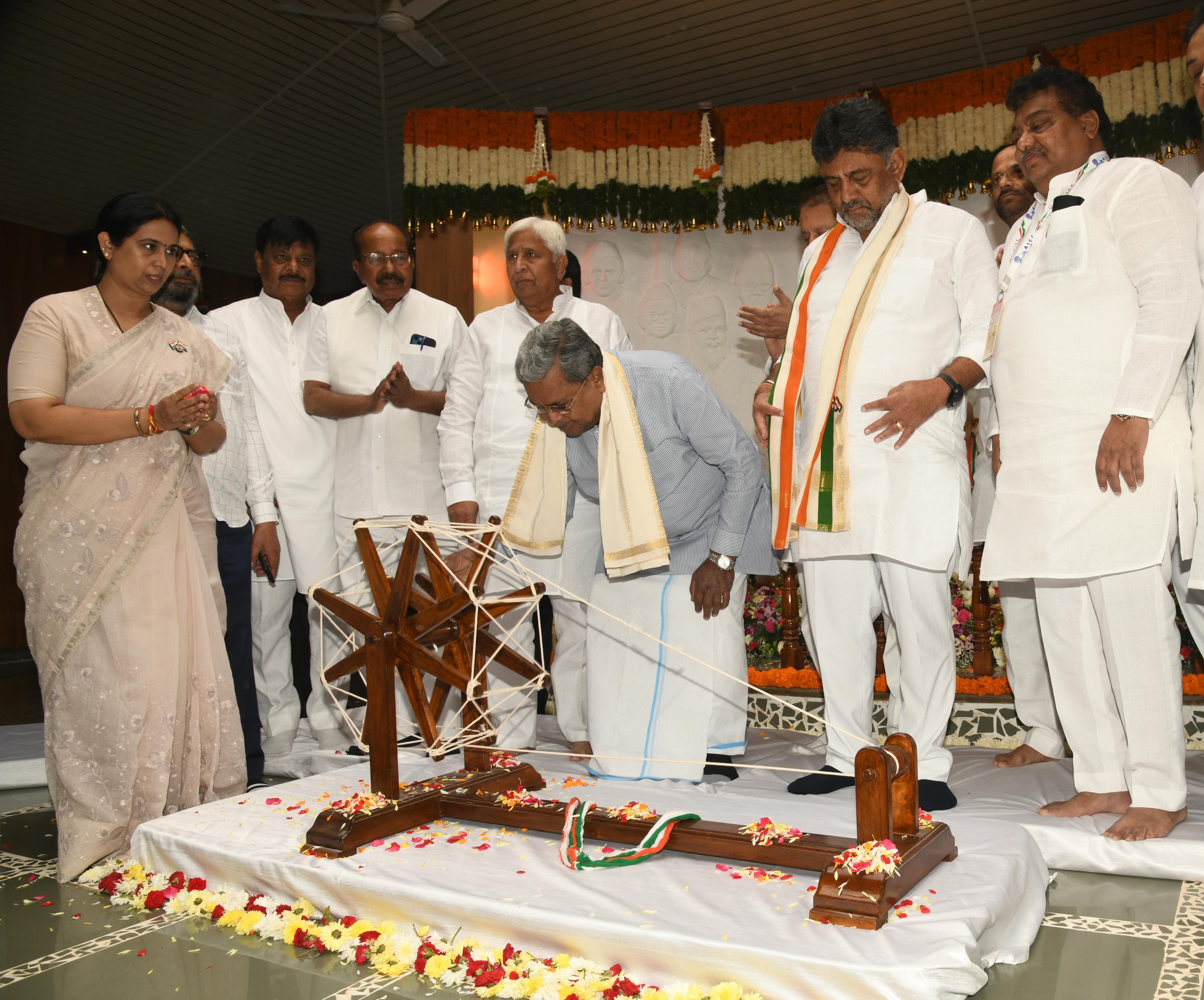 ಬೆಳಗಾವಿಯಲ್ಲಿ 1924 ರಲ್ಲಿ ಮಹಾತ್ಮಾ ಗಾಂಧೀಜಿಯವರ ಅಧ್ಯಕ್ಷತೆಯಲ್ಲಿ ಜರುಗಿದ ಕಾಂಗ್ರೆಸ್ ಅಧಿವೇಶನದ ಶತಮಾನೋತ್ಸವ ಅಂಗವಾಗಿ ಬೆಳಗಾವಿ ನಗರದ ಟಿಳಕವಾಡಿಯ ವೀರಸೌಧದಲ್ಲಿ ಮುಖ್ಯಮಂತ್ರಿ ಸಿದ್ದರಾಮಯ್ಯನವರು ಮಹಾತ್ಮಾ ಗಾಂಧೀಜಿಯವರ ಪುತ್ಥಳಿ ಅನಾವರಣಗೊಳಿಸಿದರು.