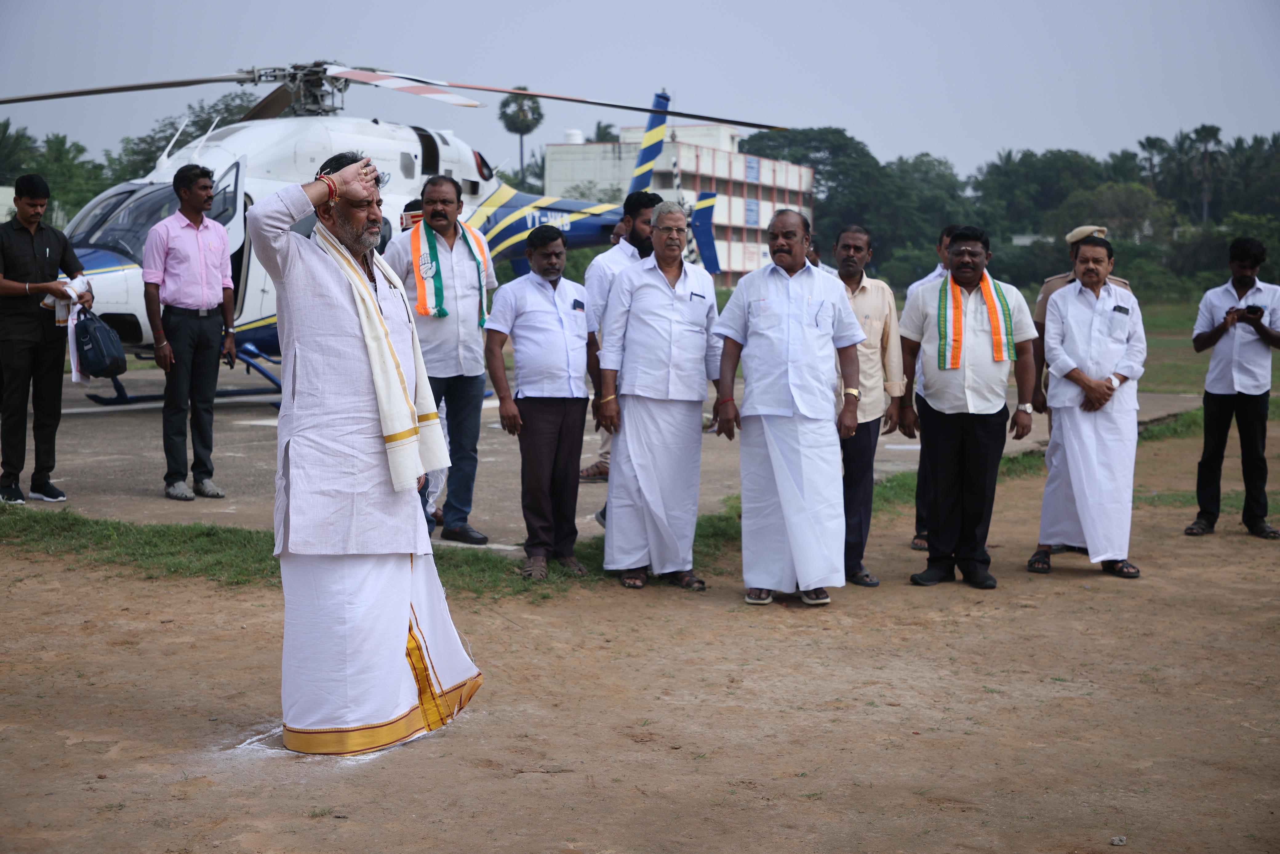 ತಮಿಳುನಾಡಿನ ಕುಂಭಕೊಂಣಂಗೆ ಗುರುವಾರ ಹೆಲಿಕಾಪ್ಟರ್ ನಲ್ಲಿ ಬಂದಿಳಿದ ಡಿಸಿಎಂ ಡಿ ಕೆ ಶಿವಕುಮಾರ್ ಅವರನ್ನು ಸ್ಥಳೀಯ ಮೇಯರ್ ಶರವಣನ್, ತಂಜಾವೂರು ಜಿಲ್ಲಾ ಕಾಂಗ್ರೆಸ್ ಅಧ್ಯಕ್ಷ ಲೋಕನಾಥನ್, ಕಾಂಗ್ರೆಸ್ ಮುಖಂಡರಾದ ಕೃಷ್ಣಸ್ವಾಮಿ, ವೆಂಕಟೇಶ್ ಮತ್ತಿತರರು ಬರಮಾಡಿಕೊಂಡರು.