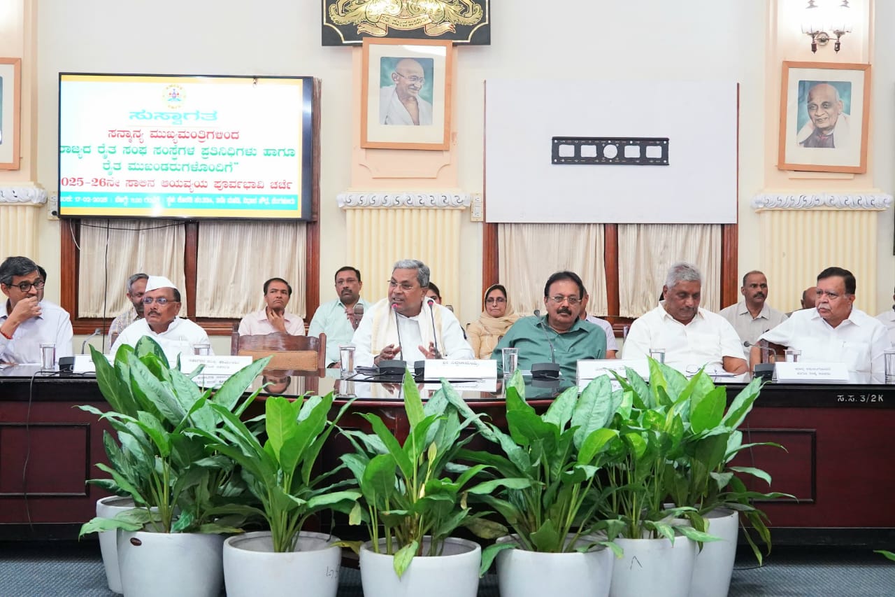 ರೈತ ಸಂಘ ಸಂಸ್ಥೆಗಳ ಪ್ರತಿನಿಧಿಗಳೊಂದಿಗೆ ಹಾಗೂ ರೈತ ಮುಖಂಡರುಗಳೊಂದಿಗೆ 2025-26ನೇ ಸಾಲಿನ ಆಯವ್ಯಯ ಸಂಬಂಧ ಮುಖ್ಯಮಂತ್ರಿ ಸಿದ್ದರಾಮಯ್ಯ ಸೋಮವಾರ ವಿಧಾನ ಸೌಧದ ಸಮ್ಮೇಳನ ಸಭಾಂಗಣದಲ್ಲಿ ಪೂರ್ವಭಾವಿ ಸಭೆ ನಡೆಸಿದರು.