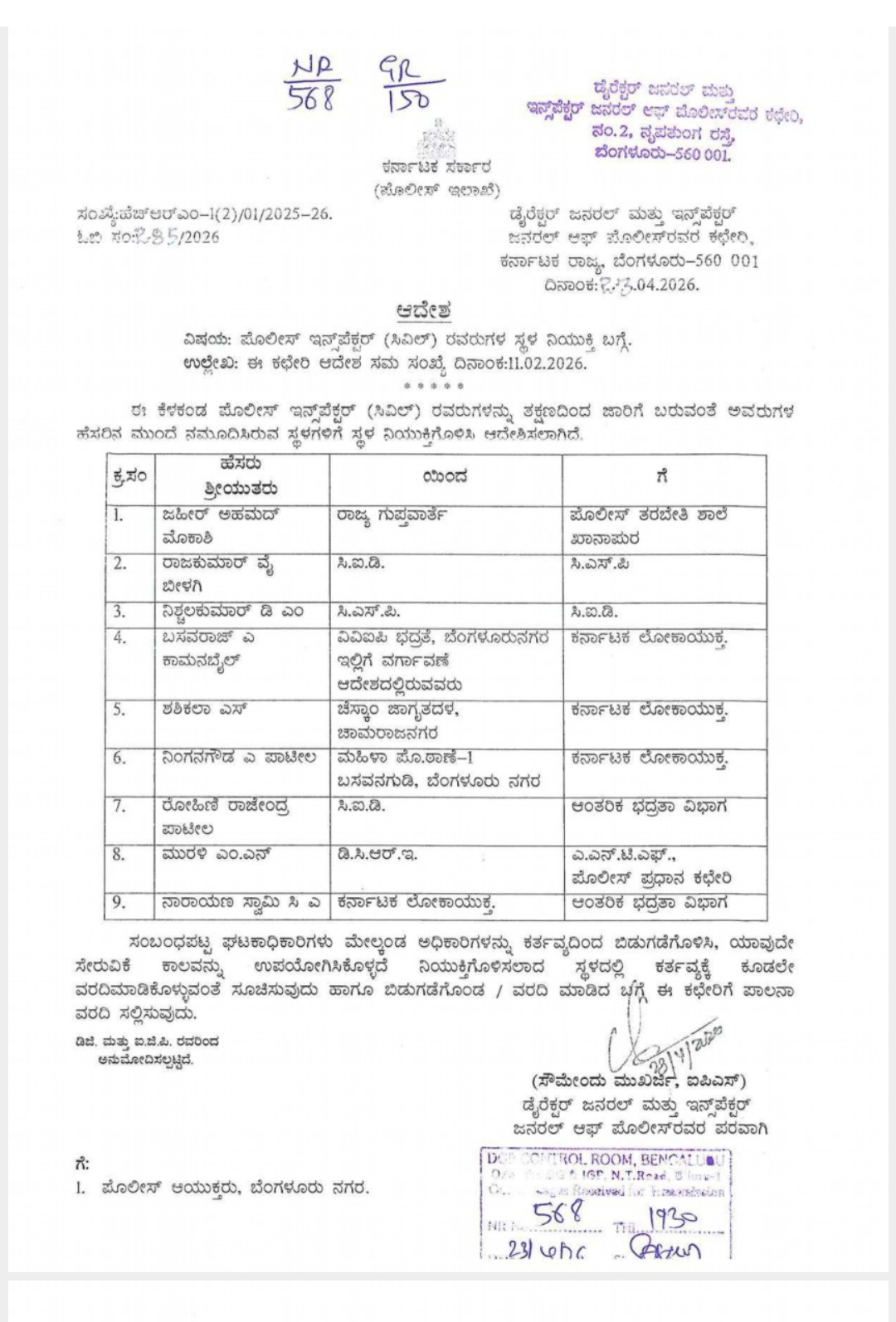 ಪೊಲೀಸ್ ಇನ್ಸ್ಪೆಕ್ಟರ್ಗಳ ಸ್ಥಳ ನಿಯುಕ್ತಿ