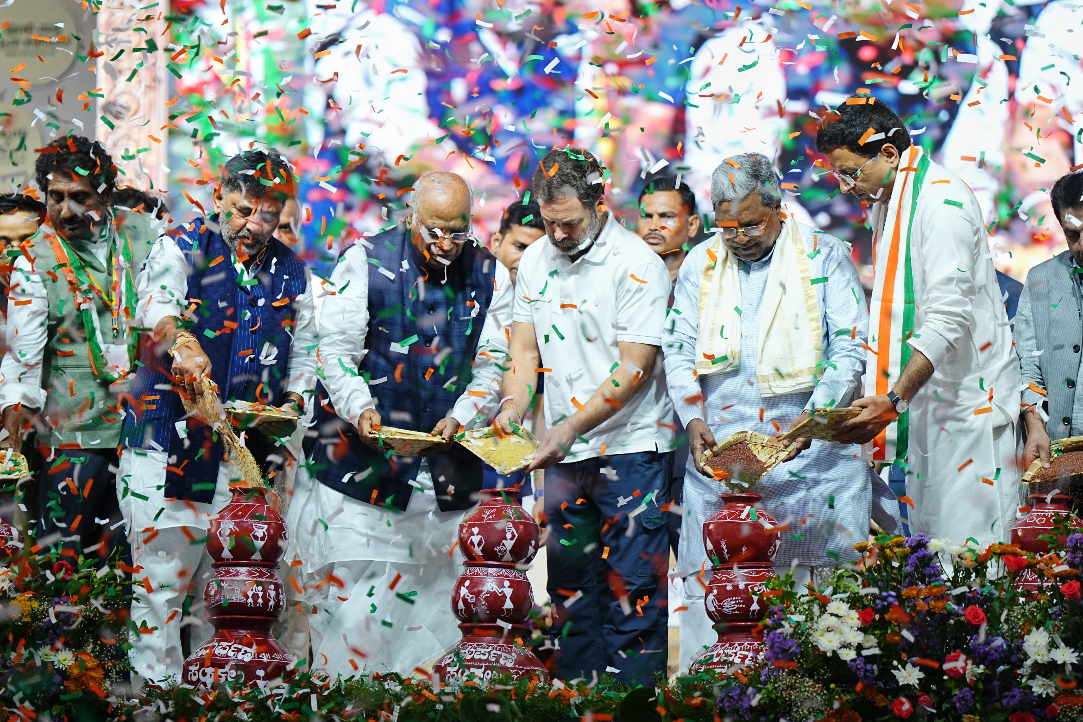 1.22 ಕೋಟಿ ಕುಟುಂಬಗಳ ಯಜಮಾನಿಯರಿಗೆ ಗೃಹಲಕ್ಷ್ಮಿ ಯೋಜನೆಯಡಿ 2000 ರೂಪಾಯಿ ಕೊಡುತ್ತಿದ್ದೇವೆ. 1.30 ಕೋಟಿ ಕುಟುಂಬಗಳಿಗೆ ಗೃಹ ಜ್ಯೋತಿ ಯೋಜನೆಯಡಿ ಅನುಕೂಲ ಒದಗಿಸಿದ್ದೇವೆ. ಜೊತೆಗೆ ಇಡೀ ರಾಜ್ಯದ ಮಹಿಳೆಯ ರಿಗೆ ಶಕ್ತಿ ಯೋಜನೆಯಡಿ ಉಚಿತ ಪ್ರಯಾಣದ ವ್ಯವಸ್ಥೆ ಮಾಡಿದ್ದೇವೆ ಎಂದರು.