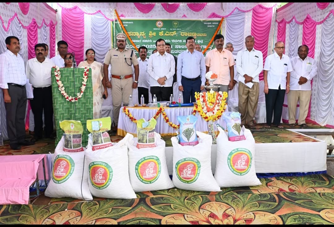 ಮಧುಗಿರಿ ಪಟ್ಟಣದ ಎ.ಪಿ.ಎಂ.ಸಿ ಅವರಣದಲ್ಲಿ ಕೃಷಿ ಇಲಾಖೆಯ 2025-26ನೇ ಸಾಲಿನ ಮುಂಗಾರು ಹಂಗಾಮಿನ ಬಿತ್ತನೆ ಬೀಜ ವಿತರಣಾ ಕಾರ್ಯಕ್ರಮ