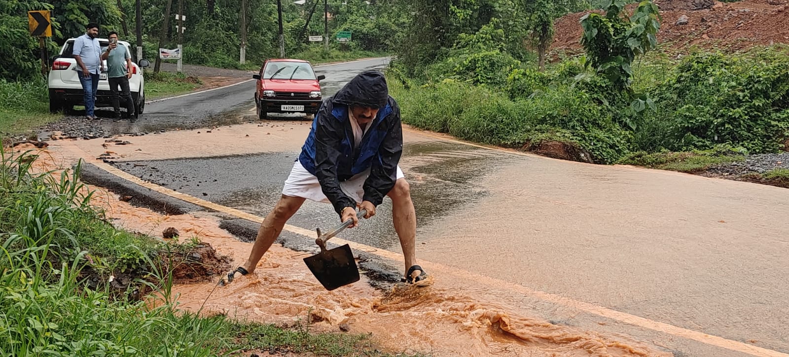 ಇನ್ನು ಈ ಅಧಿಕಾರಿಗಳಿಗೆ ಹೇಳಿದರೆ ಸುಖ ಇಲ್ಲ. ನಾಯಿ ಬಾಲ ಸರ್ತ ಆಗುವುದಿಲ್ಲ, ವಿರೋಧ ಪಕ್ಷದವರು ಕೆಲಸ ಮಾಡಿಸದಿರುವುದಕ್ಕೆ ಶಾಸಕರ ವೈಫಲ್ಯ ಕಾರಣ ಎಂದು ಹೇಳುವುದು ಗ್ಯಾರಂಟಿ ಎಂಬುದನ್ನು ನಿಕ್ಕಿ ಮಾಡಿಕೊಂಡ ರೈಗಳು ಹಾರೆ ಪಿಕ್ಜಾಸು ಹಿಡಿದು ನೀರು ರಸ್ತೆ ಬಿಟ್ಟು ತೋಡಿನಲ್ಲಿ ಹೋಗಲಿ ಎಂದು ಮಣ್ಣು ಗರ್ಪಿ ನೀರಿಗೆ ದಾರಿ ತೋರಿಸುತ್ತಿದ್ದಾರೆ.