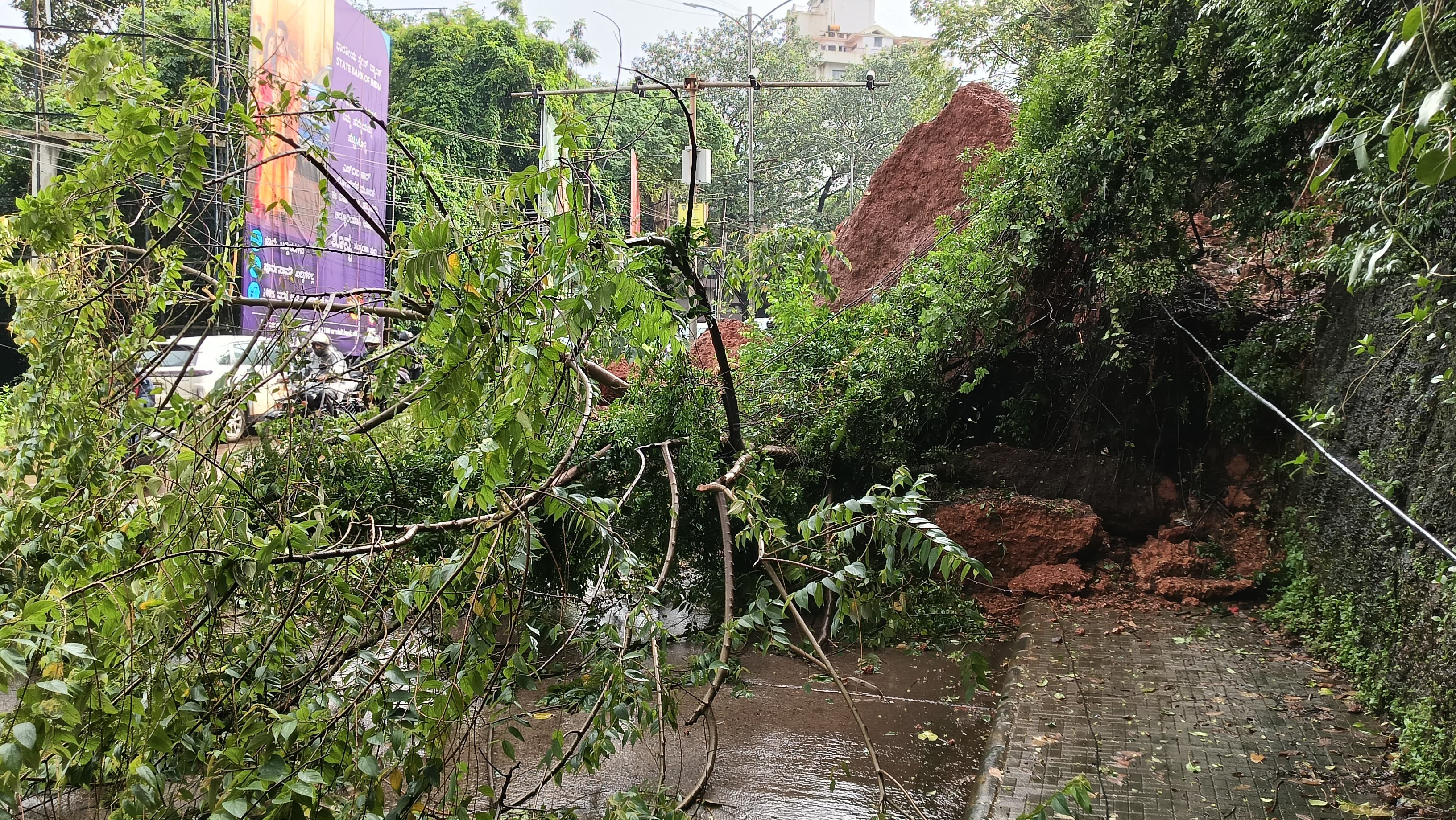 ಅವಿರತವಾಗಿ ಸುರಿಯುತ್ತಿರುವ ಮಳೆ; ಕದ್ರಿ ಸಮೀಪ ಸರ್ಕ್ಯೂಟ್ ಹೌಸ್ ನಿಂದ ಬಿಜೈ ಗೆ ಬರುವ ರಸ್ತೆಯ ಮೇಲಿನ ಗುಡ್ಡ ಕುಸಿತ