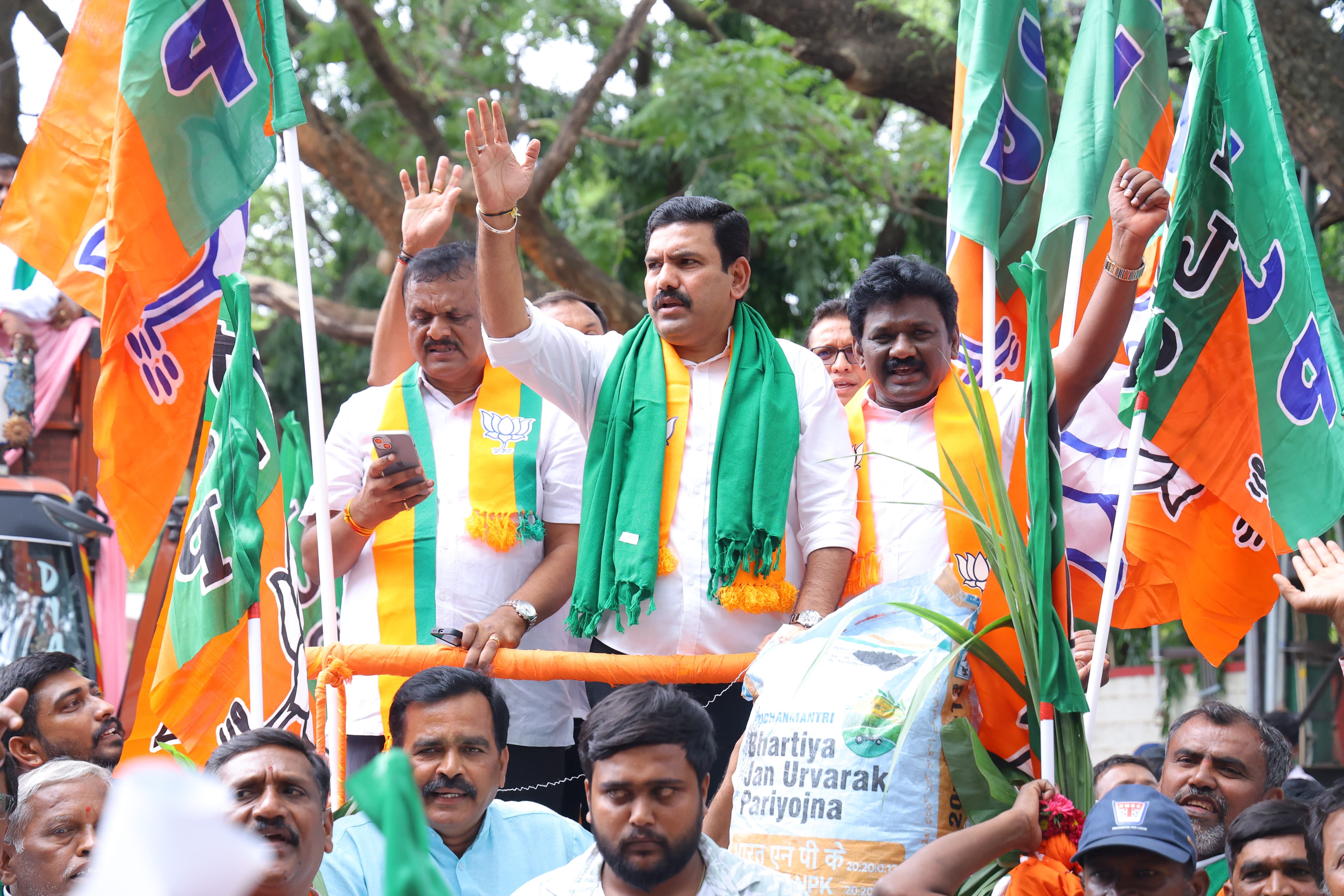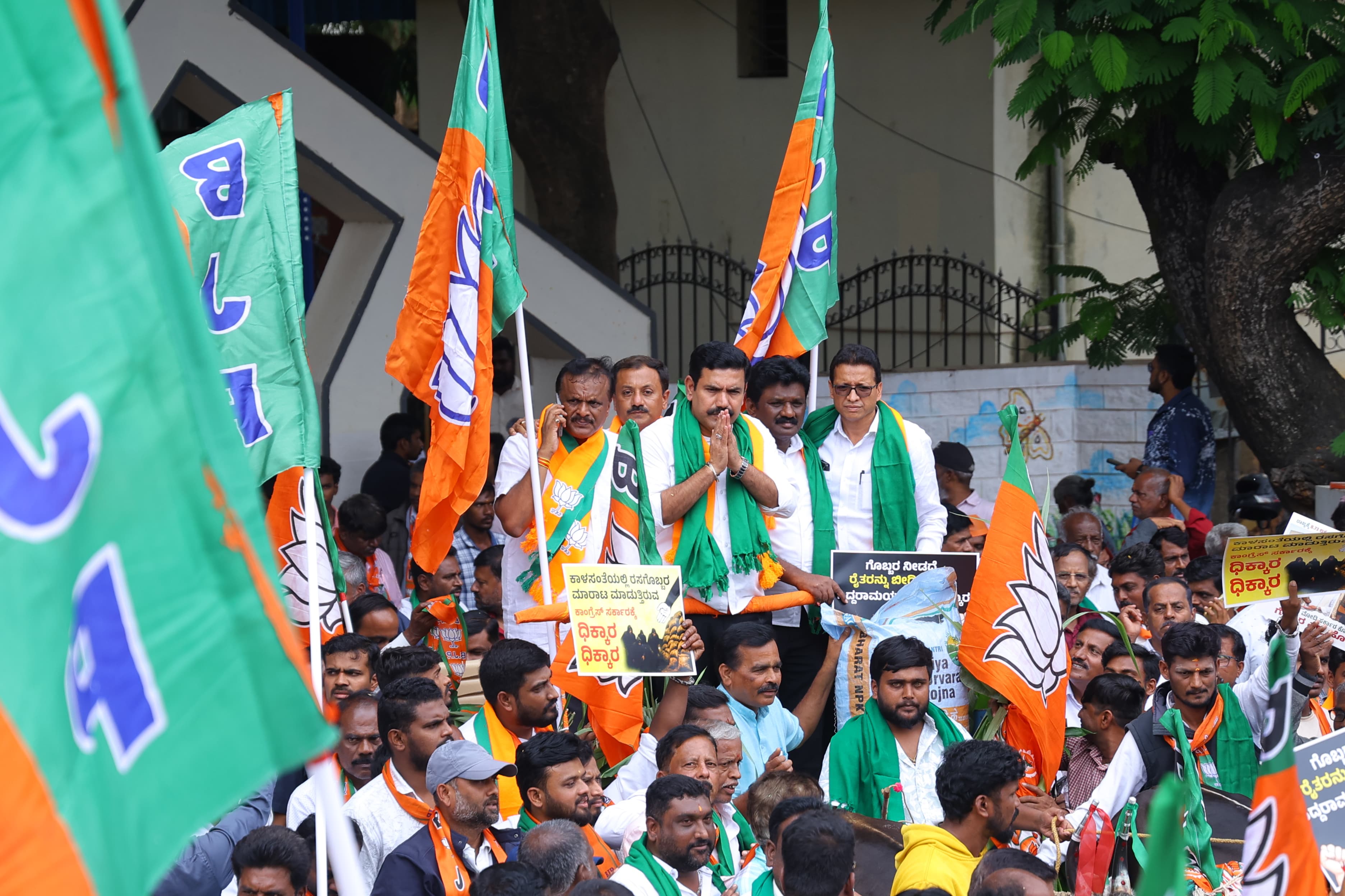 ರೈತರಿಗೆ ರಸಗೊಬ್ಬರ ಪೂರೈಕೆಯಲ್ಲಿ ರಾಜ್ಯ ಕಾಂಗ್ರೆಸ್ ಸರ್ಕಾರದ ವೈಫಲ್ಯ ವಿರುದ್ಧ ಪ್ರತಿಭಟನೆ