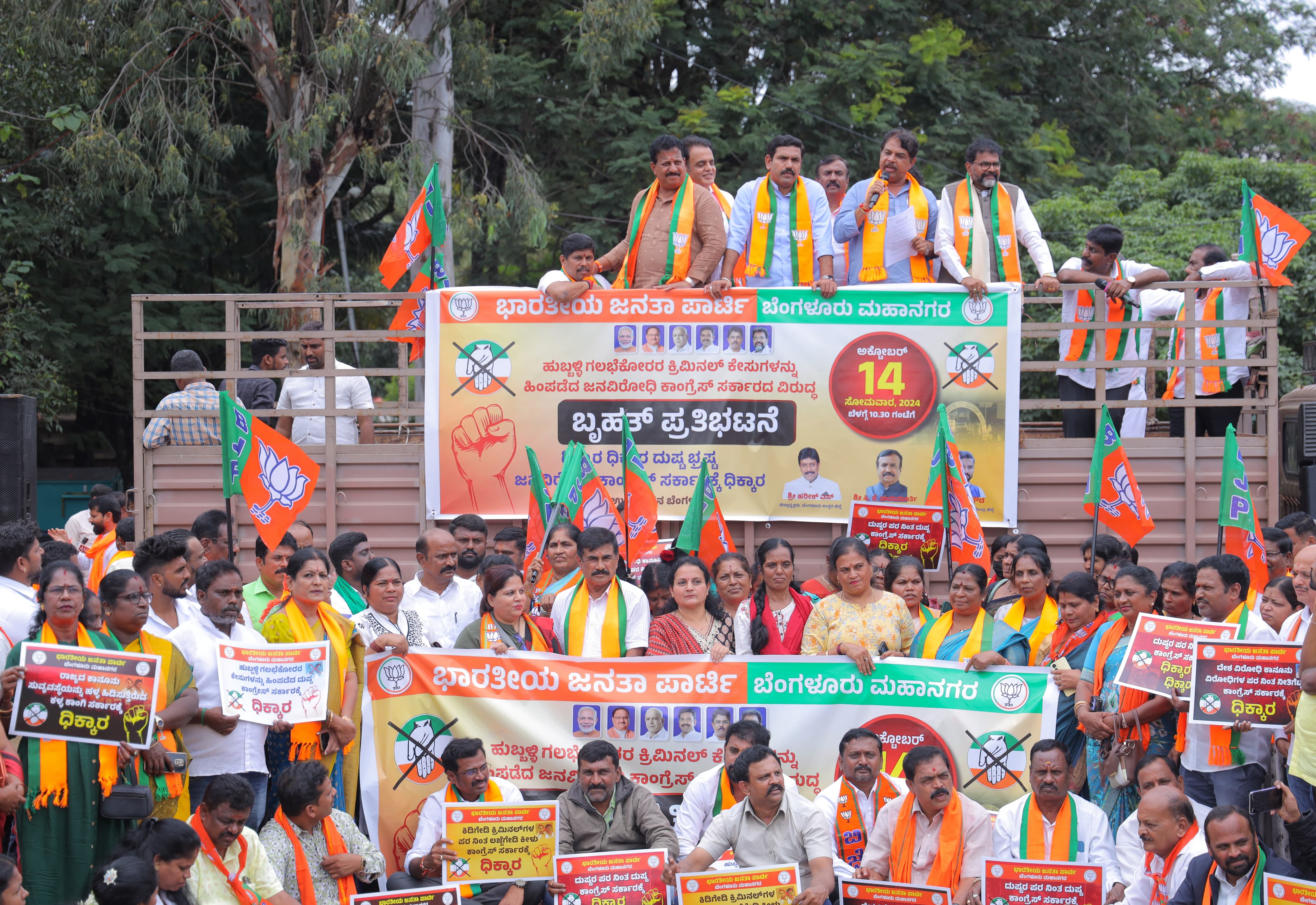 ಹುಬ್ಬಳ್ಳಿ ಗಲಭೆ ಪ್ರಕರಣದ ಮೊಕದ್ದಮೆಗಳನ್ನು ವಾಪಸ್ ಪಡೆದಿರುವ ರಾಜ್ಯ ಸರ್ಕಾರದ ತೀರ್ಮಾನವನ್ನು ಖಂಡಿಸಿ ಬಿಜೆಪಿ ಸೋಮವಾರ ರಾಜ್ಯಾದ್ಯಂತ ಪ್ರತಿಭಟನೆ ನಡೆಸಿತು