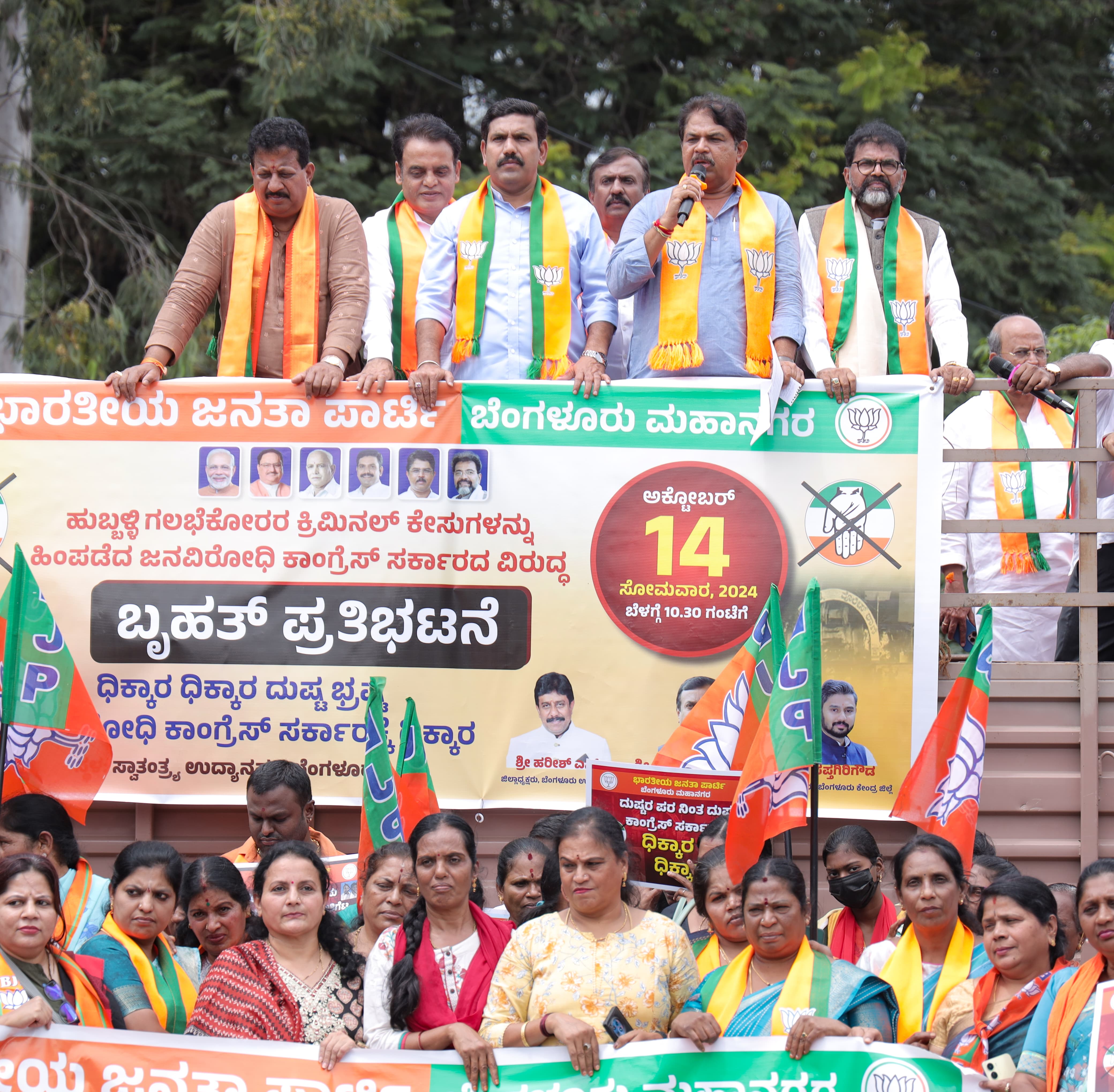 ಬೆಂಗಳೂರಿನ ಸ್ವಾತಂತ್ರ್ಯ ಉದ್ಯಾನದಲ್ಲಿ ರಾಜ್ಯ ಸರ್ಕಾರದ ವಿರುದ್ಧ ನಡೆದ ಪ್ರತಿಭಟನೆಯಲ್ಲಿ ಪ್ರತಿಪಕ್ಷ ನಾಯಕ ಆರ್.ಅಶೋಕ ಭಾಗವಹಿಸಿದರು. ನಂತರ ಬಿಜೆಪಿ ಶಾಸಕರು, ಮುಖಂಡರೊಂದಿಗೆ ರಾಜಭವನಕ್ಕೆ ತೆರಳಿ, ರಾಜ್ಯಪಾಲ ಥಾವರ್ ಚಂದ್ ಗೆಹ್ಲೋಟ್ ಅವರನ್ನು ಭೇಟಿ ಮಾಡಿ ದೂರು ಪತ್ರ ಸಲ್ಲಿಸಿದರು.
