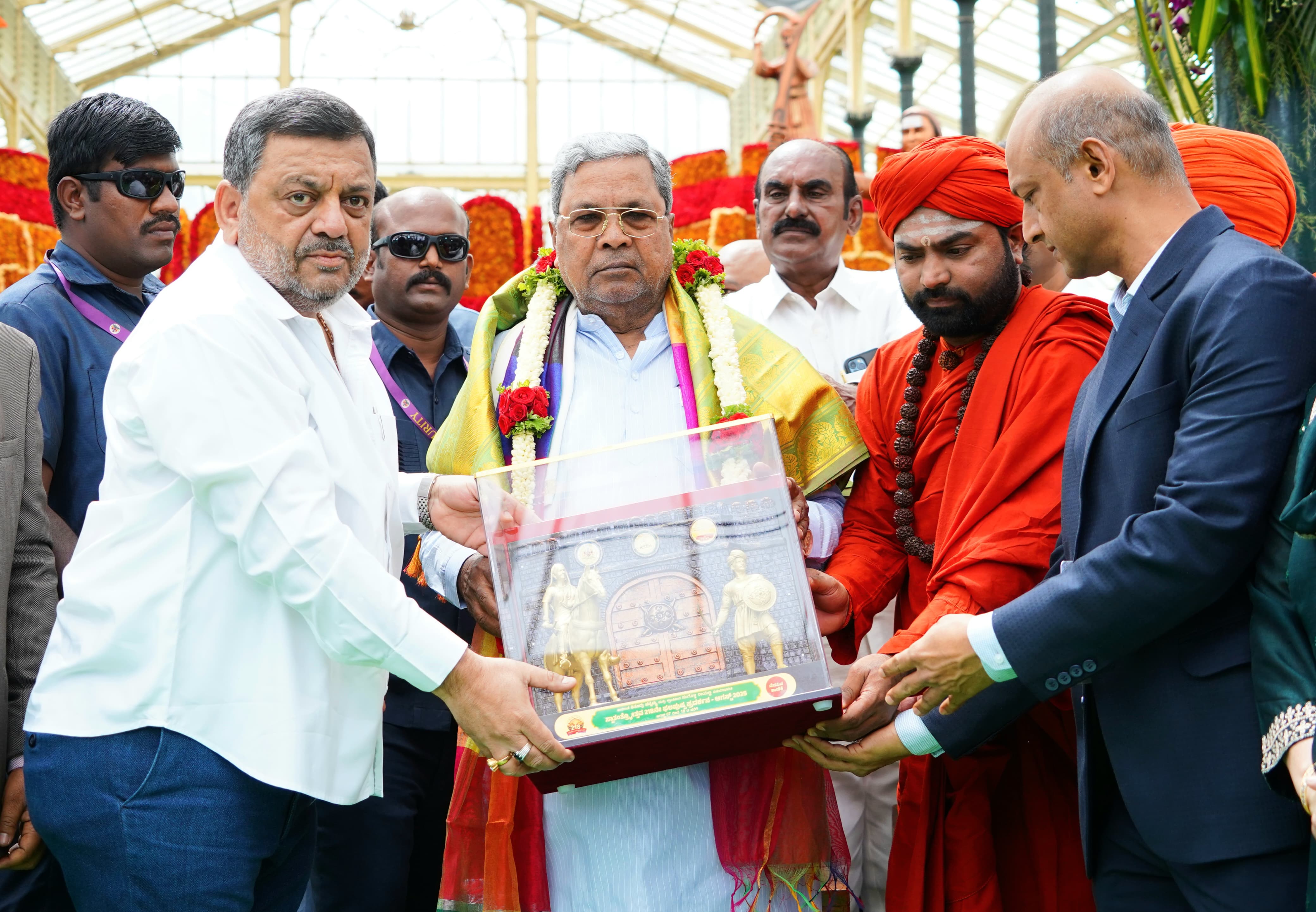 ಮುಖ್ಯಮಂತ್ರಿ ಸಿದ್ದರಾಮಯ್ಯ ಅವರು ಇಂದು ಬೆಂಗಳೂರಿನ ಲಾಲ್ಬಾಗ್ನಲ್ಲಿ ಆಯೋಜಿಸಿದ್ದ "ವೀರರಾಣಿ ಕಿತ್ತೂರು ಚೆನ್ನಮ್ಮ ಮತ್ತು ಕ್ರಾಂತಿವೀರ ಸಂಗೊಳ್ಳಿ ರಾಯಣ್ಣನವರ ವಿಷಯಾಧಾರಿತ ಸ್ವಾತಂತ್ರ್ಯೋತ್ಸವದ ಫಲಪುಷ್ಪ ಪ್ರದರ್ಶನವ"ನ್ನು ಉದ್ಘಾಟಿಸಿ, ಸ್ವಾತಂತ್ರ್ಯ ಸೇನಾನಿಗಳಿಗೆ ನಮಿಸಿದರು. ತೋಟಗಾರಿಕೆ ಸಚಿವರಾದ ಎಸ್.ಎಸ್.ಮಲ್ಲಿಕಾರ್ಜುನ, ಹರಿಹರ ವೀರಶೈವ ಲಿಂಗಾಯತ ಪಂಚಮಸಾಲಿ ಗುರುಪೀಠದ ಶ್ರೀ ವಚನಾನಂದ ಸ್ವಾಮಿಗಳು, ಮಹರ್ಷಿ ವಾಲ್ಮೀಕಿ ಗುರುಪೀಠದ ಶ್ರೀ ಪ್ರಸನ್ನಾನಂದಪುರಿ ಸ್ವಾಮೀಜಿ ಸೇರಿದಂತೆ ಇತರೆ ಗಣ್ಯರು ಉಪಸ್ಥಿತರಿದ್ದರು.