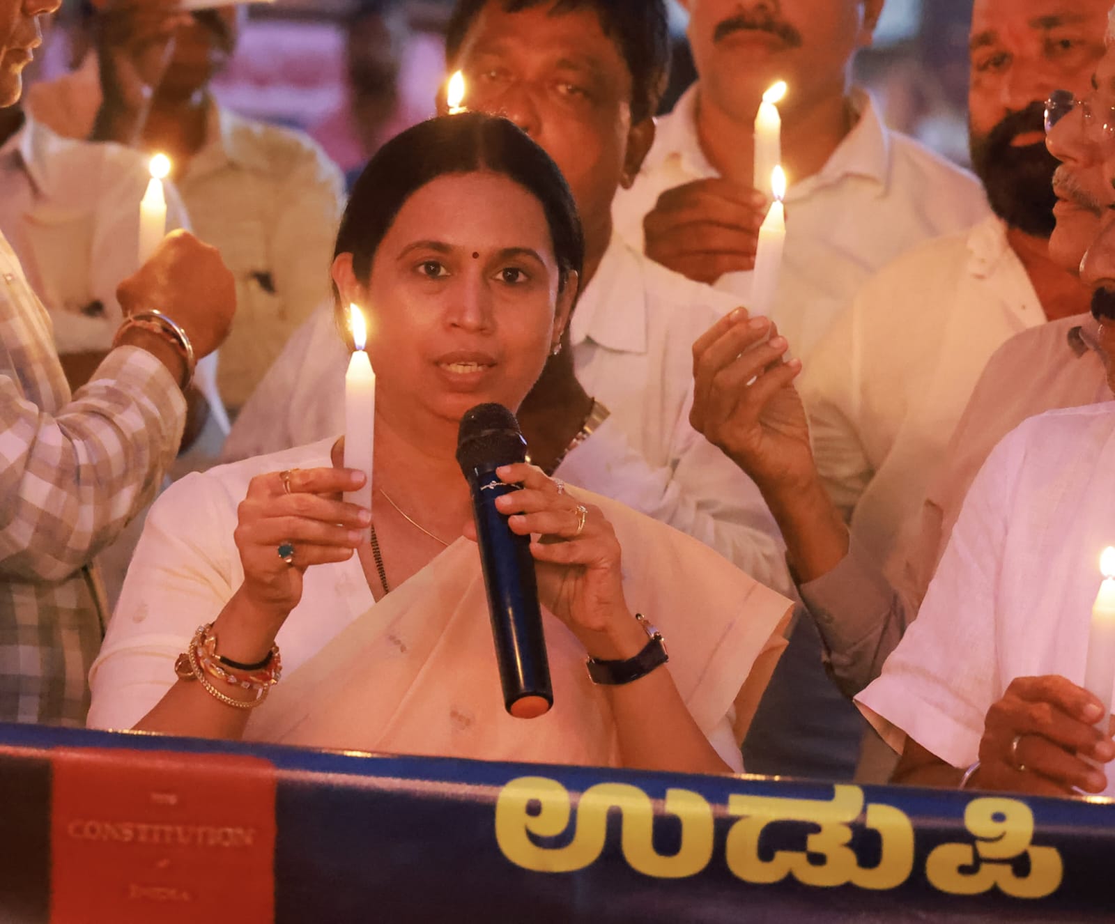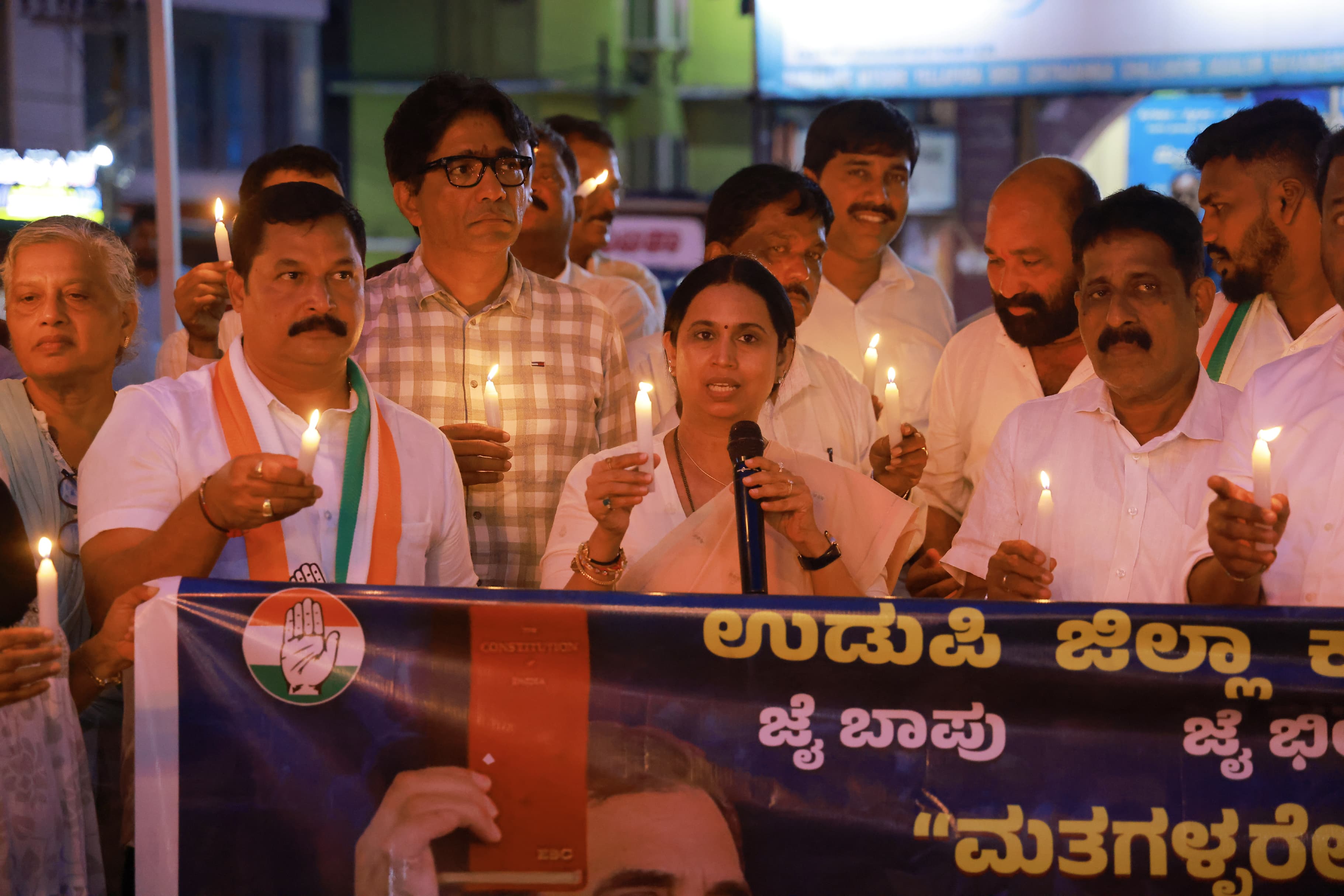 ಉಡುಪಿ ಜಿಲ್ಲಾ ಕಾಂಗ್ರೆಸ್ ಸಮಿತಿಗಳ ವತಿಯಿಂದ “ ಮತಕಳ್ಳರೇ ಅಧಿಕಾರ ಬಿಟ್ಟು ತೊಲಗಿ ” ಕಾರ್ಯಕ್ರಮದ ಅಂಗವಾಗಿ ಕ್ಲಾಕ್ ಟವರ್ ನ ಗಾಂಧಿ ಪ್ರತಿಮೆ ಬಳಿ ಕ್ಯಾಂಡಲ್ ಲೈಟ್ ಪ್ರತಿಭಟನೆಯಲ್ಲಿ ಭಾಗವಹಿಸಿ ಮಾತನಾಡಿದ ಸಚಿವರು, ಚುನಾವಣೆಯನ್ನು ನಿಷ್ಪಕ್ಷಪಾತ, ನಿರ್ಭಿತಿಯಿಂದ ನಡೆಸಬೇಕು. ಆದರೆ, ಚುನಾವಣಾ ಆಯೋಗದ ಧೋರಣೆಯನ್ನು ನೋಡಿದರೆ ಬೇಲಿಯೇ ಎದ್ದು ಹೊಲ ಮೇಯ್ದಂತಾಗಿದೆ ಎಂದರು.