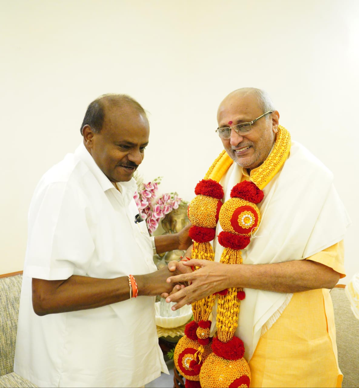 ಮಾಜಿ ಪ್ರಧಾನಿಗಳ ನಿವಾಸಕ್ಕೆ ಆಗಮಿಸಿದ ರಾಧಾಕೃಷ್ಣನ್ ಅವರನ್ನು ಕೇಂದ್ರ ಉಕ್ಕು ಮತ್ತು ಬೃಹತ್ ಕೈಗಾರಿಕೆಗಳ ಸಚಿವ ಹೆಚ್.ಡಿ. ಕುಮಾರಸ್ವಾಮಿ ಅವರು ಗೌರವಪೂರ್ವಕವಾಗಿ ಬರಮಾಡಿಕೊಂಡರು.