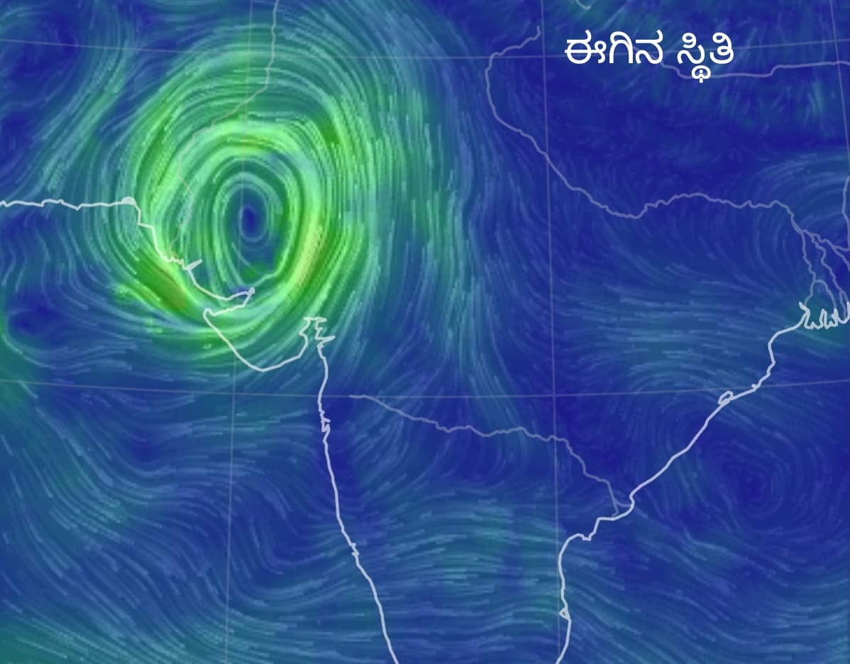 ಗುಜರಾತ್ ಗೆ ತಲಪಿರುವ ವಾಯುಭಾರ ಕುಸಿತವು ನಾಳೆ ಪಾಕಿಸ್ತಾನ ಗಡಿ ದಾಟಲಿದೆ ಮತ್ತು ಶಿಥಿಲಗೊಳ್ಳುವ ಲಕ್ಷಣಗಳಿವೆ.