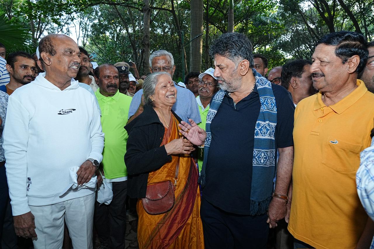 ಭಾನುವಾರ ಬೆಳಗ್ಗೆ ಜೆಪಿ ಪಾರ್ಕ್ ಉದ್ಯಾನದಲ್ಲಿ ಜನಸಾಮಾನ್ಯರ ಜತೆ ಹೆಜ್ಜೆ ಹಾಕಿಅಹವಾಲು ಆಲಿಸಿದ ಡಿಸಿಎಂ ಡಿಕೆಶಿ
