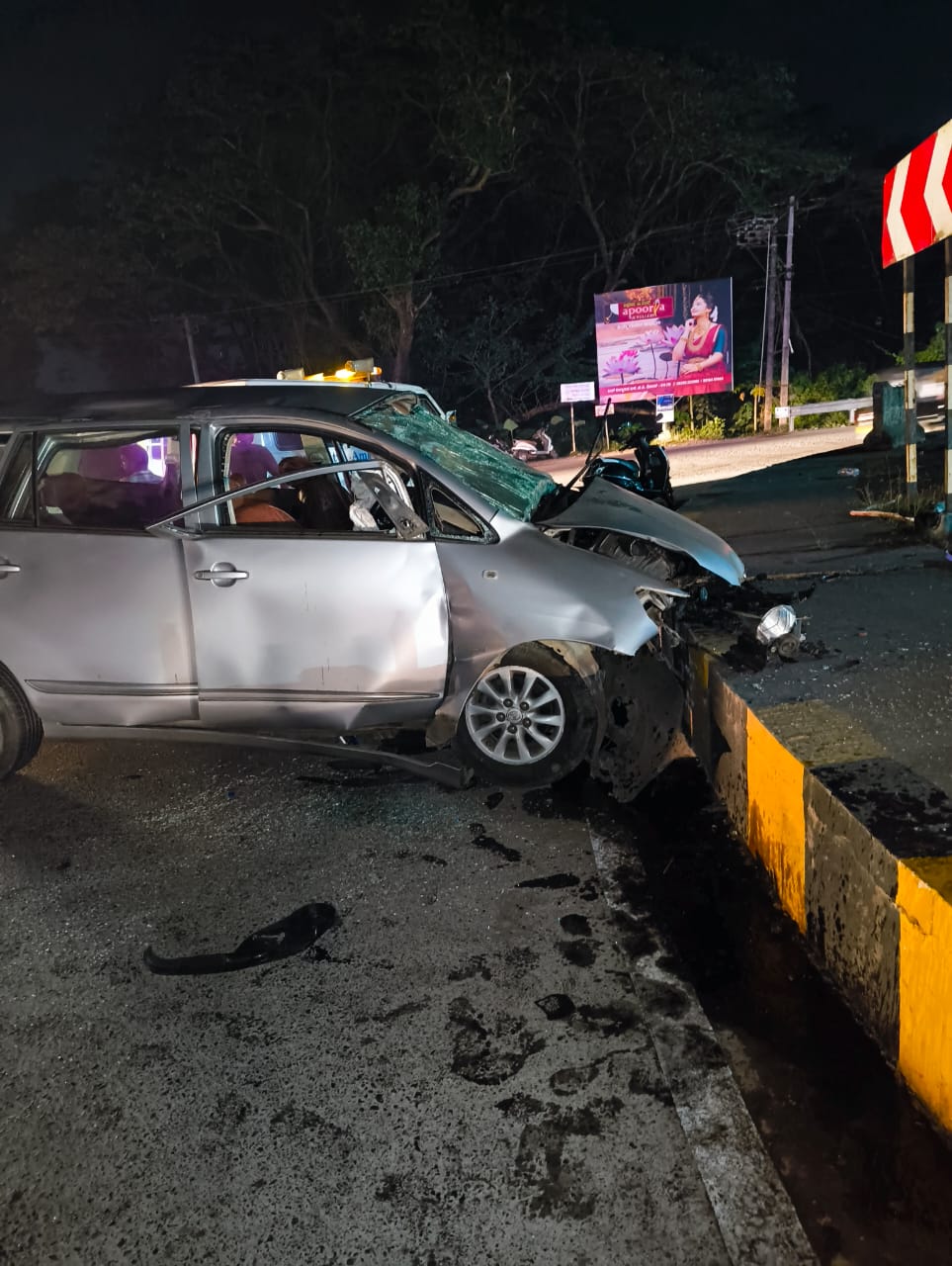 ಮುಂಜಾನೆ ಸುಮಾರು 4.40 ರ ಸಮಯದಲ್ಲಿ ಬೆಂಗಳೂರಿನ ಕಡೆಯಿಂದ ಬರುತ್ತಿದ್ದ ಕಾರು ಬಿಸಿರೋಡಿನ ಎನ್.ಜಿ.ಸರ್ಕಲ್ ಗೆ ಡಿಕ್ಕಿ ಹೊಡೆದಿದೆ.