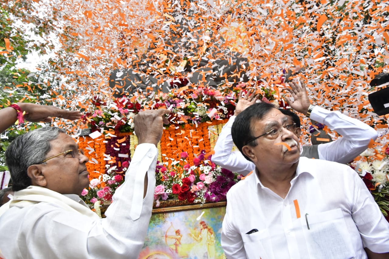 ಮಹರ್ಷಿ ವಾಲ್ಮೀಕಿ ಜಯಂತಿಯ ಪ್ರಯುಕ್ತ ಮುಖ್ಯಮಂತ್ರಿ ಸಿದ್ದರಾಮಯ್ಯ ಅವರು ವಿಧಾನಸೌಧ ಮುಂಭಾಗದಲ್ಲಿರುವ ವಾಲ್ಮೀಕಿ ಪ್ರತಿಮೆಗೆ ಮಾಲಾರ್ಪಣೆ ಮಾಡಿ ಪುಷ್ಪಾರ್ಚನೆ ಮಾಡಿದರು.