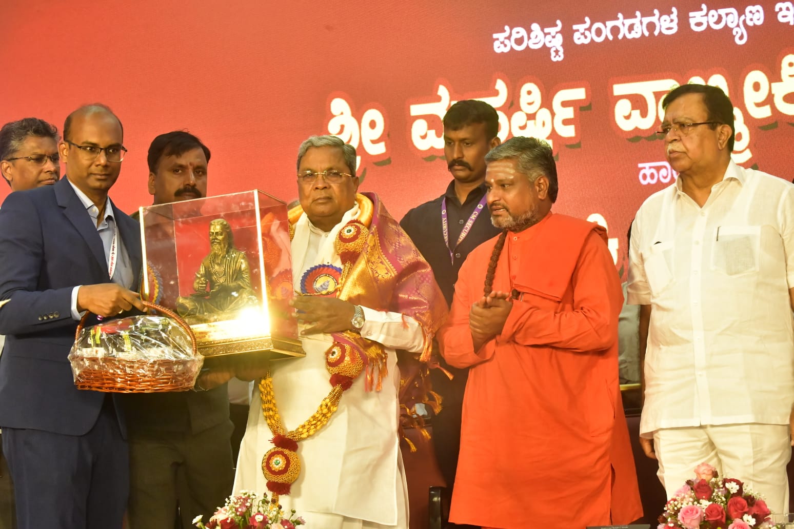 ವಾಲ್ಮೀಕಿ ಸಮಾಜದ ರಾಜನಹಳ್ಳಿ ಮಠದ ಪ್ರಸನ್ನಾ ನಂದಪುರಿ ಸ್ವಾಮೀಜಿಗಳು ಸಚಿವರಾದ ಕೆ.ಎನ್.ರಾಜಣ್ಣ, ಸತೀಶ್ ಜಾರಕಿಹೊಳಿ, ಪರಿಶಿಷ್ಠ ಪಂಗಡಗಳ ಅಭಿವೃದ್ಧಿ ನಿಗಮದ ಅಧ್ಯಕ್ಷರಾದ ಶಾಸಕರಾದ ಬಸವನಗೌಡ ದದ್ದಲ್, ಪ್ರಕಾಶ್ ಹುಕ್ಕೇರಿ ಸೇರಿ ಸಮುದಾಯದ ಮುಖಂಡರು ಉಪಸ್ಥಿತರಿದ್ದರು.