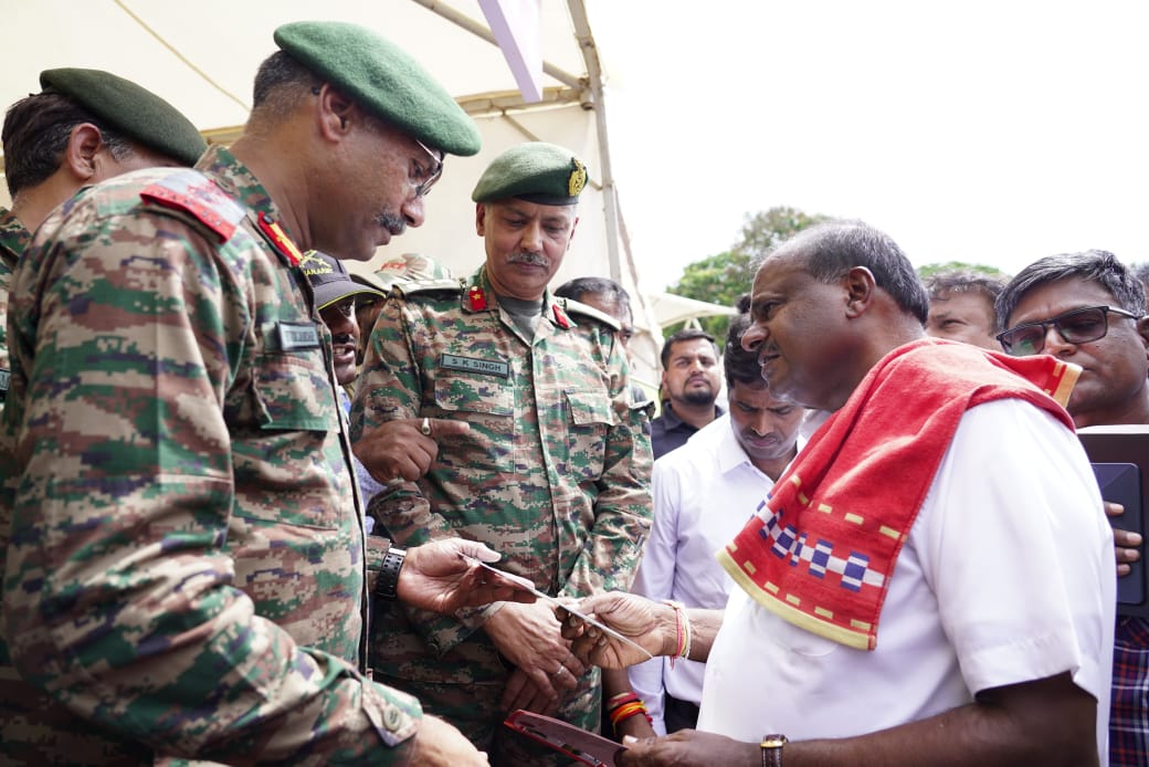 ಉದ್ಯೋಗ ಮೇಳದಲ್ಲಿ ಉದ್ಯೋಗಕಾಶ ನೀಡಲು ಭೂಸೇನೆ, ವಾಯು ಸೇನೆ ಹಾಗೂ ನೌಕಾಪಡೆ ತೆರೆದಿದ್ದ ಮಳಿಗೆಗಳಿಗೆ ಕೇಂದ್ರ ಸಚಿವರಾದ ಶ್ರೀ HD ಕುಮಾರಸ್ವಾಮಿ ಅವರು ಭೇಟಿ ನೀಡಿ ಅಧಿಕಾರಿಗಳ ಜತೆ ಅವಕಾಶಗಳ ಬಗ್ಗೆ ಮಾತುಕತೆ ನಡೆಸಿದರು.