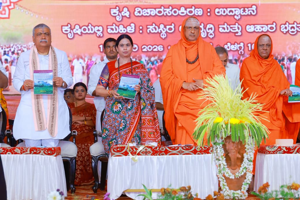 ಜಗದ್ಗುರು ಶ್ರೀ ವೀರಸಿಂಹಾಸನ ಮಹಾಸಂಸ್ಥಾನ ಸಂಸ್ಥಾಪನಾಚಾರ್ಯ ಆದಿ ಜಗದ್ಗುರು ಶ್ರೀ ಶಿವರಾತ್ರೀಶ್ವರ ಶಿವಯೋಗಿಗಳವರ ಸುತ್ತೂರು ಜಾತ್ರಾ ಮಹೋತ್ಸವದ ಅಂಗವಾಗಿ ನಡೆದ ಕೃಷಿಯಲ್ಲಿ ಮಹಿಳೆ: ಸುಸ್ಥಿರ ಅಭಿವೃದ್ಧಿ ಮತ್ತು ಆಹಾರ ಭದ್ರತೆ ಕುರಿತು ಕೃಷಿ ವಿಚಾರ ಸಂಕಿರಣವನ್ನು ಉದ್ಘಾಟಿಸಿ ಸಚಿವರು ಮಾತನಾಡಿದರು.