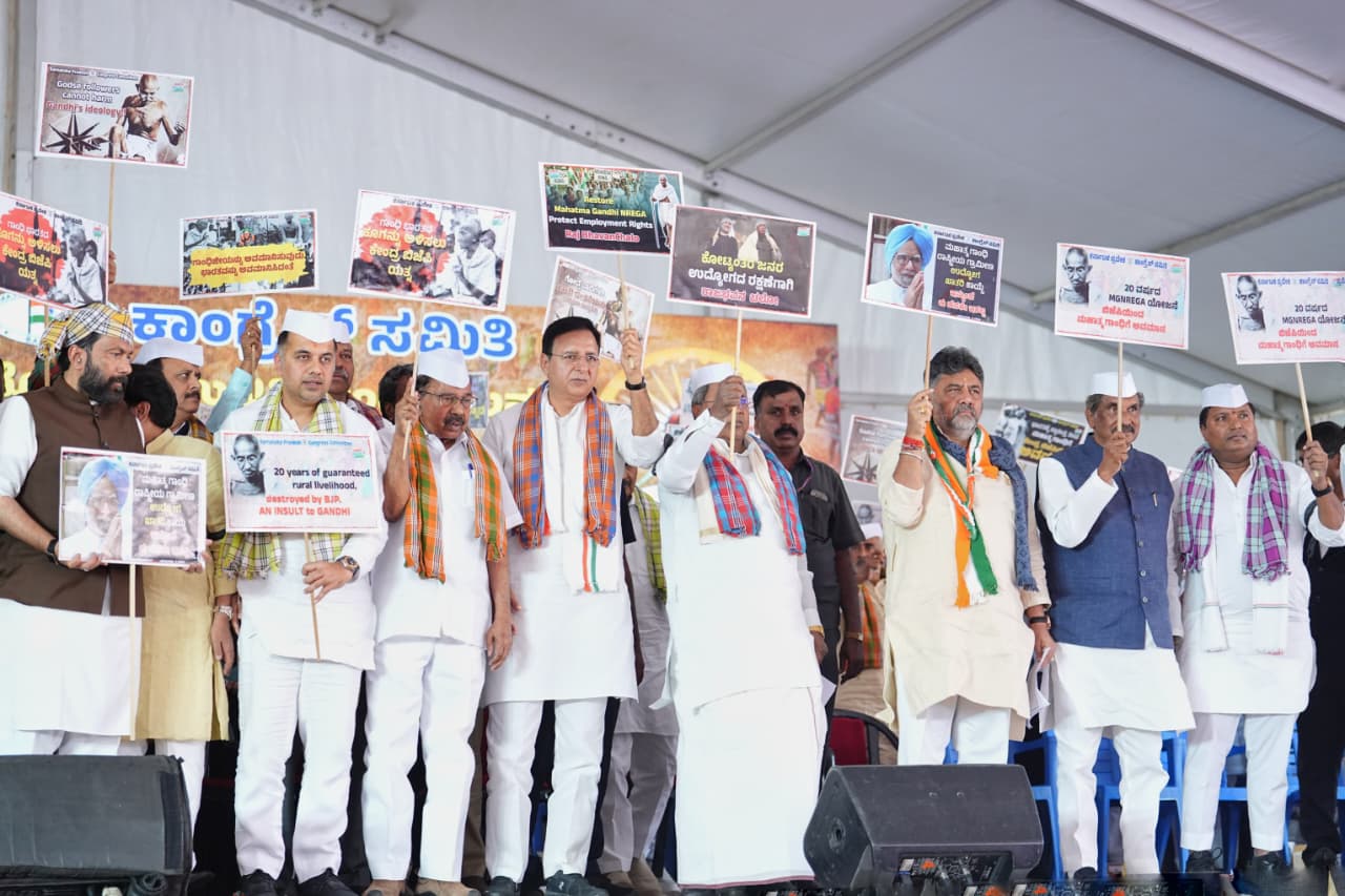 “ಬಡ ಜನರ ಉದ್ಯೋಗದ ಹಕ್ಕಿನ ಪರವಾಗಿ ನಾವು ಹೋರಾಟ ಮಾಡುತ್ತಿದ್ದೇವೆ. ಉದ್ಯೋಗ ಇಲ್ಲದವರಿಗೆ ಉದ್ಯೋಗ ನೀಡಿದ್ದು, ಸೋನಿಯಾ ಗಾಂಧಿ ಅವರ ನೇತೃತ್ವದ ಮನಮೋಹನ್ ಸಿಂಗ್ ಅವರ ಸರ್ಕಾರ. ನಮ್ಮ ಉದ್ಯೋಗ ಖಾತರಿ ಯೋಜನೆಯನ್ನು ವಿಶ್ವವೇ ಗಮನಿಸಿತ್ತು. ಈ ಯೋಜನೆ ಬಹಳ ಅತ್ಯುತ್ತಮ ಯೋಜನೆ ಎಂದು ವಿಶ್ವಬ್ಯಾಂಕ್ 2013ರಲ್ಲಿ ಶ್ಲಾಘಿಸಿತ್ತು. 5700 ಪಂಚಾಯ್ತಿಗಳಿದ್ದು, ಪ್ರತಿ ವರ್ಷ ನಮ್ಮ ರಾಜ್ಯದಲ್ಲಿ ಈ ಯೋಜನೆಯಿಂದ 6 ಸಾವಿರ ಕೋಟಿ ಖರ್ಚು ಮಾಡಲಾಗುತ್ತಿತ್ತು” ಎಂದು ಹೇಳಿದರು.