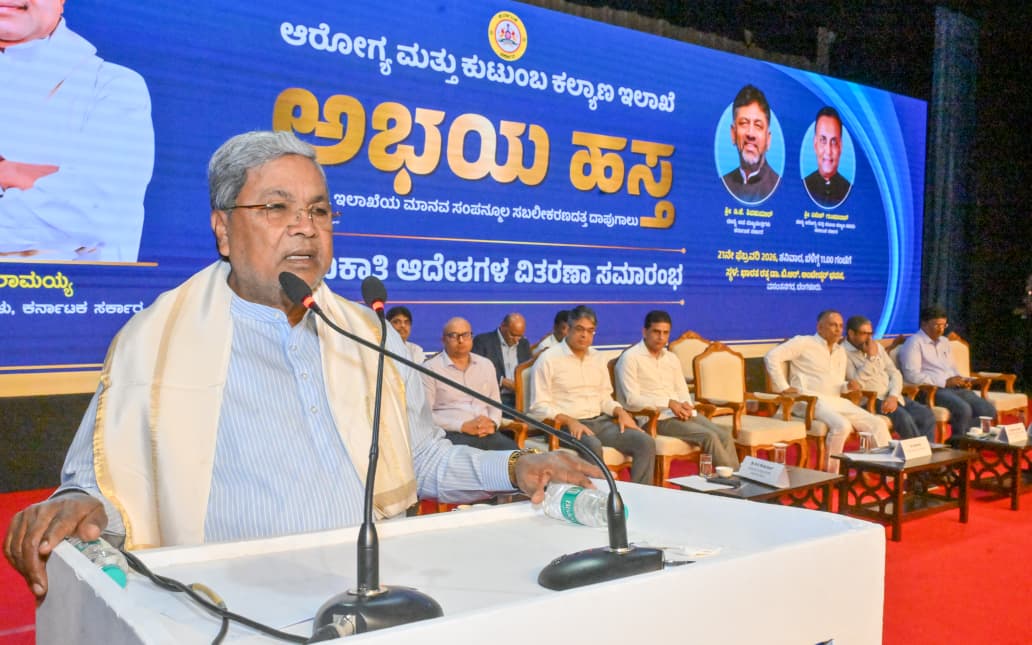 ಅವರು ಇಂದು ಅರೋಗ್ಯ ಮತ್ತು ಕುಟುಂಬ ಕಲ್ಯಾಣ ಇಲಾಖೆ ವತಿಯಿಂದ ಆಯೋಜಿಸಲಾಗಿದ್ದ ಅಭಯ ಹಸ್ತ ಅರೋಗ್ಯ ಮತ್ತು ಕುಟುಂಬ ಕಲ್ಯಾಣ ಇಲಾಖೆ ಹಾಗೂ ಆಹಾರ ಸುರಕ್ಷತೆ ಮತ್ತು ಔಷಧ ಆಡಳಿತದ ವೃಂದಗಳ ನೇಮಕಾತಿ ಆದೇಶಗಳ ವಿತರಣೆ ಕಾರ್ಯಕ್ರಮದಲ್ಲಿ ಭಾಗವಹಿಸಿ ಮಾತನಾಡಿದರು.