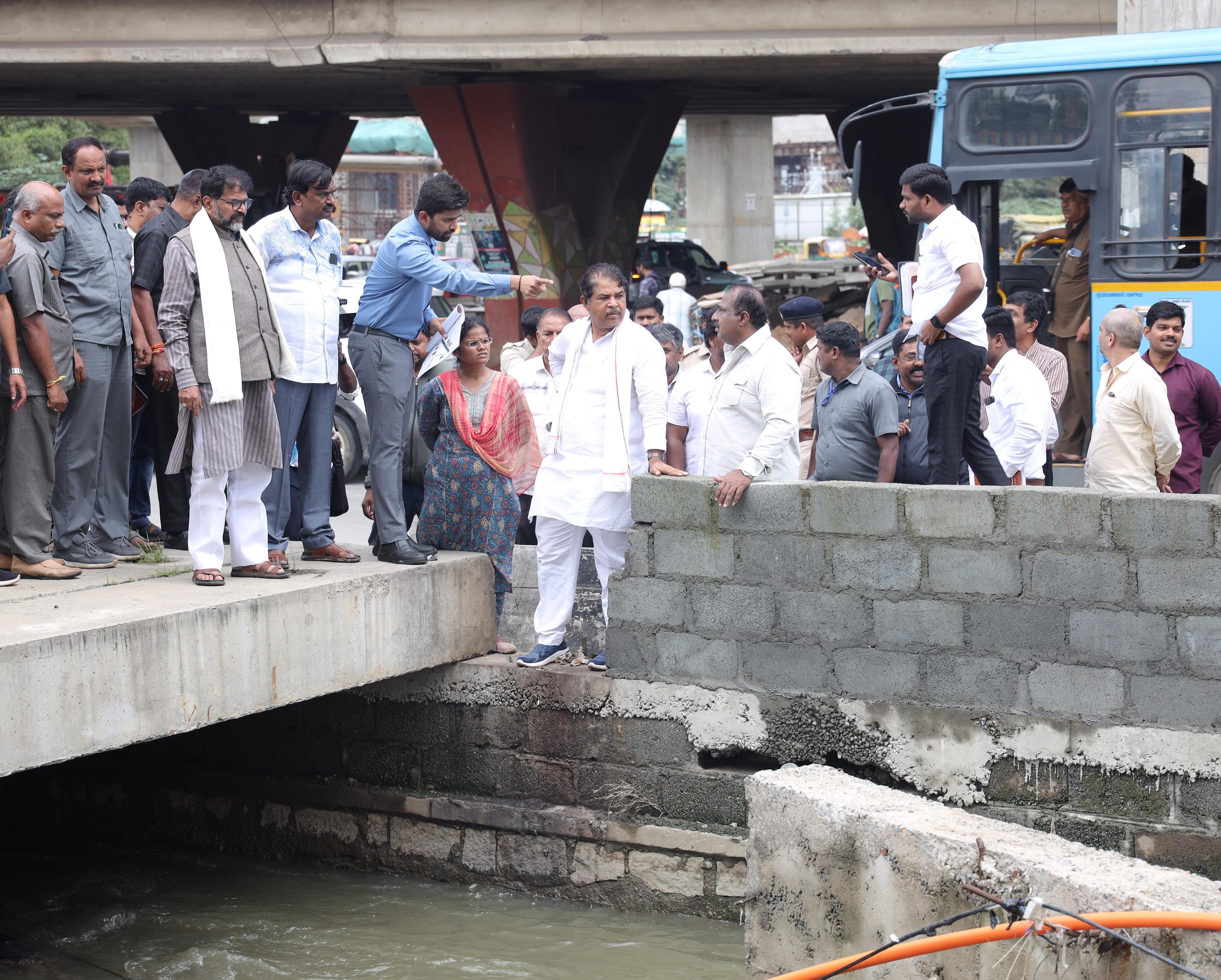 ಸಿಲ್ಕ್ ಬೋರ್ಡ್ ವೃತ್ತದ ಬಳಿ ಮಳೆ ಹಾನಿ ಪರಿಶೀಲನೆ ನಡೆಸಿದ ಅವರು, ನಂತರ ಸುದ್ದಿಗಾರರೊಂದಿಗೆ ಮಾತನಾಡಿದರು.