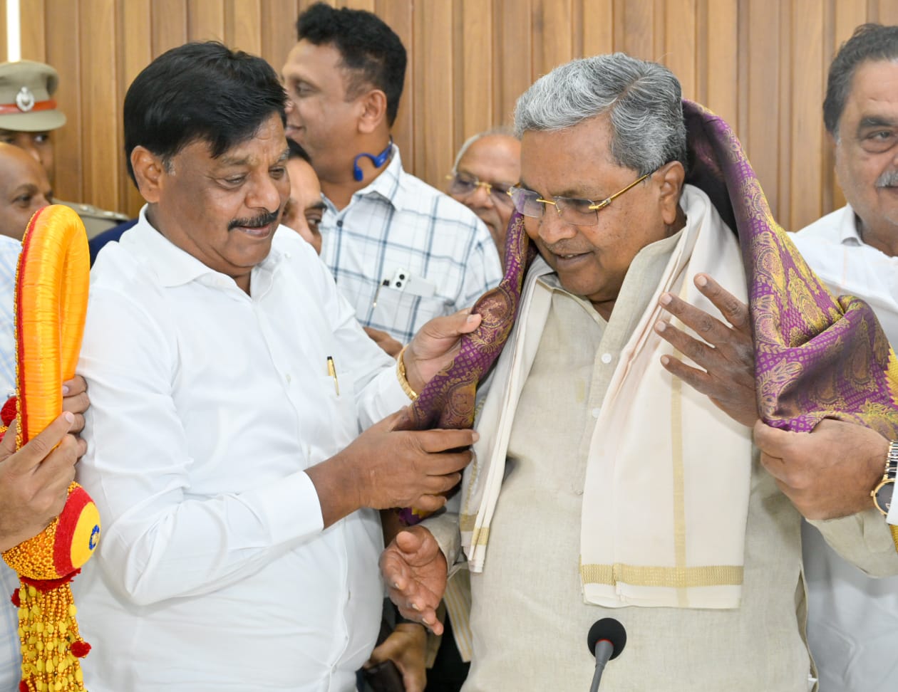ಮೈಸೂರು ಜಿಲ್ಲಾ ಉಸ್ತುವಾರಿ ಸಚಿವರಾದ ಹೆಚ್.ಸಿ.ಮಹದೇವಪ್ಪ ಅವರ ನೇತೃತ್ವದಲ್ಲಿ ಮೈಸೂರು ಜಿಲ್ಲಾಧಿಕಾರಿಗಳು ಹಾಗೂ ಜಿಲ್ಲಾ ಮಟ್ಟದ ಅಧಿಕಾರಿಗಳು ಇಂದು ಕಾವೇರಿ ನಿವಾಸದಲ್ಲಿ ಮುಖ್ಯಮಂತ್ರಿ ಸಿದ್ದರಾಮಯ್ಯ ಅವರನ್ನು ನಾಡ ಹಬ್ಬ ದಸರಾಗೆ ಆಹ್ವಾನಿಸಿದರು. ಮುಖ್ಯಮಂತ್ರಿಗಳ ರಾಜಕೀಯ ಕಾರ್ಯದರ್ಶಿ ಗೋವಿಂದರಾಜು ಮತ್ತು ಮೈಸೂರು ಮತ್ತು ಚಾಮರಾಜನಗರ ಜಿಲ್ಲೆಯ ಶಾಸಕರುಗಳು, ನಾಯಕರು ಈ ಸಂದರ್ಭದಲ್ಲಿ ಉಪಸ್ಥಿತರಿದ್ದರು.