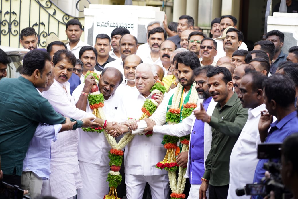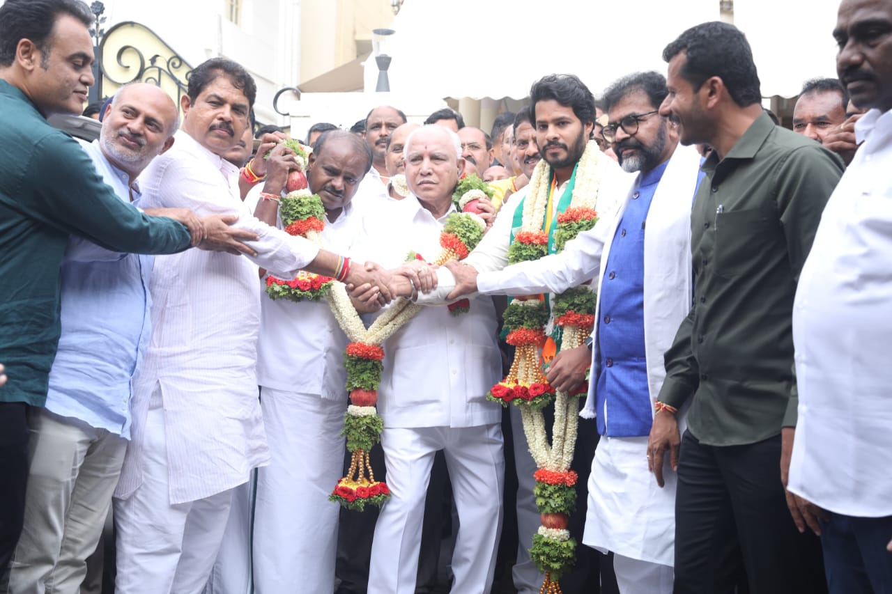 ಮಾಜಿ ಸಿಎಂ ಯಡಿಯೂರಪ್ಪ ನಿವಾಸದಲ್ಲಿ ಎನ್ ಡಿಎ ಮುಖಂಡರ ಸಭೆಯ ಬಳಿಕ ನಿಖಿಲ್ ಕುಮಾರಸ್ವಾಮಿ ಹೆಸರು ಅಧಿಕೃತ ಘೋಷಣೆಯಾಗಲಿದೆ..