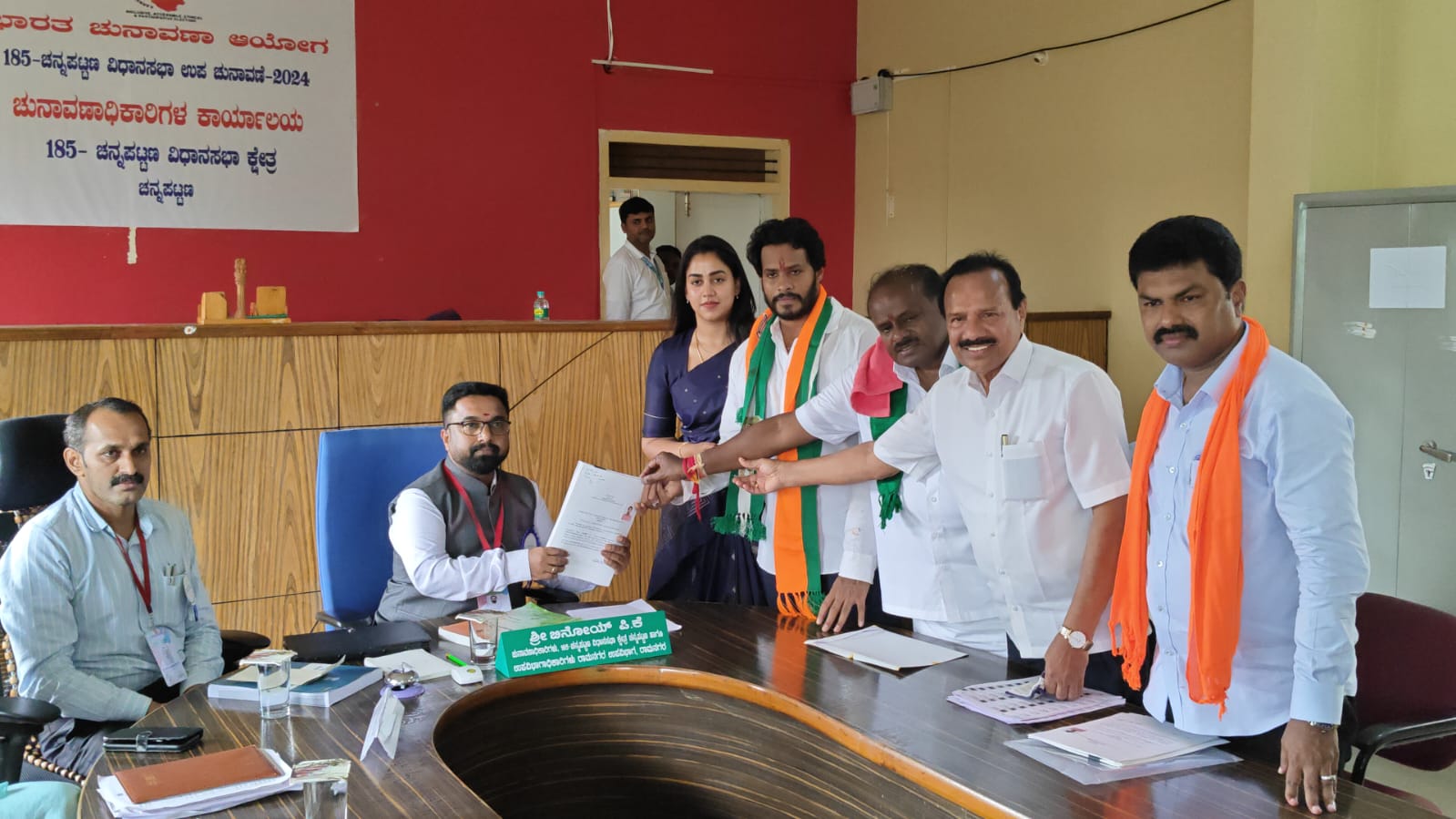 ಚನ್ನಪಟ್ಟಣದಲ್ಲಿ ನಾಮಪತ್ರ ಸಲ್ಲಿಕೆಗೂ ಮುನ್ನ ನಿಖಿಲ್ ಕುಮಾರಸ್ವಾಮಿಯವರು ಮಾಜಿ ಪ್ರಧಾನಿ ದೇವೇಗೌಡರ ಆಶೀರ್ವಾದ ಪಡೆದುಕೊಂಡು ಬೆಂಗಳೂರಿನ ಜೆ.ಪಿ.ನಗರಲ್ಲಿರುವ ತಿರುಮಲಗಿರಿ ಲಕ್ಷ್ಮೀವೆಂಕಟೇಶ್ವರ ದೇವಾಲಯಕ್ಕೆ ದೇವೇಗೌಡರು ಹಾಗೂ ಕೇಂದ್ರ ಸಚಿವ ಕುಮಾರಸ್ವಾಮಿಯವರ ಜತೆ ತೆರಳಿ ವಿಶೇಷ ಪೂಜೆ ಸಲ್ಲಿಸಿದರು. ಅಲ್ಲಿಂದ ನೇರವಾಗಿ ಚನ್ನಪಟ್ಟಣಕ್ಕೆ ಬಂದು ನಾಮಪತ್ರ ಸಲ್ಲಿಸಿದರು