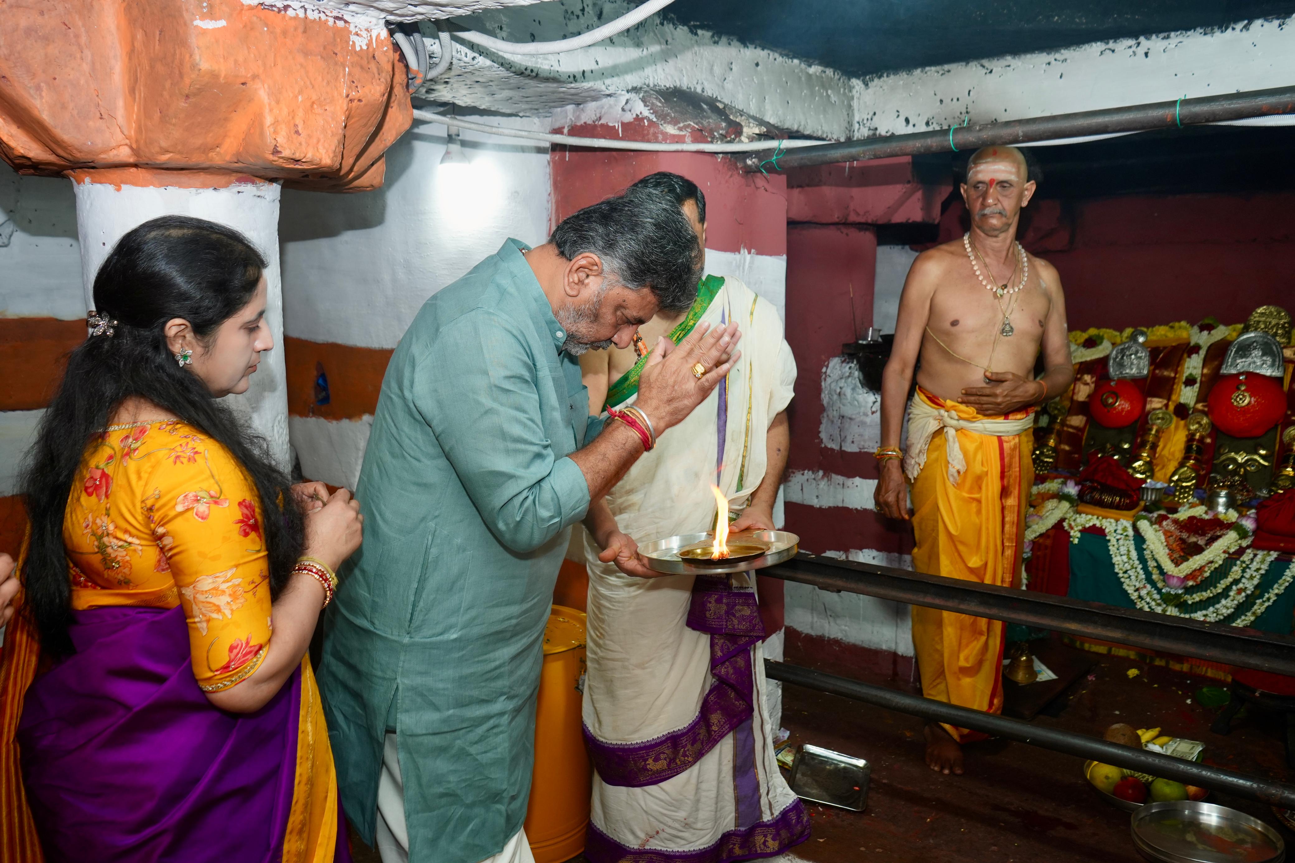 ಡಿಸಿಎಂ ಡಿ ಕೆ ಶಿವಕುಮಾರ್ ಅವರು ಪತ್ನಿ ಉಷಾ ಅವರೊಡನೆ ಶುಕ್ರವಾರ ಹಾಸನದ ಹಾಸನಾಂಬೆ ದೇವರ ದರ್ಶನ ಪಡೆದರು. ಸಂಸದ ಶ್ರೇಯಸ್ ಪಟೇಲ್, ಶಾಸಕ ಶಿವಲಿಂಗೇಗೌಡ, ಡಿಸಿ ಸತ್ಯಭಾಮ, ಎಸ್ಪಿ ಮೊಹಮ್ಮದ್ ಸುಜೀತಾ ಮತ್ತಿತರರು ಇದ್ದರು.