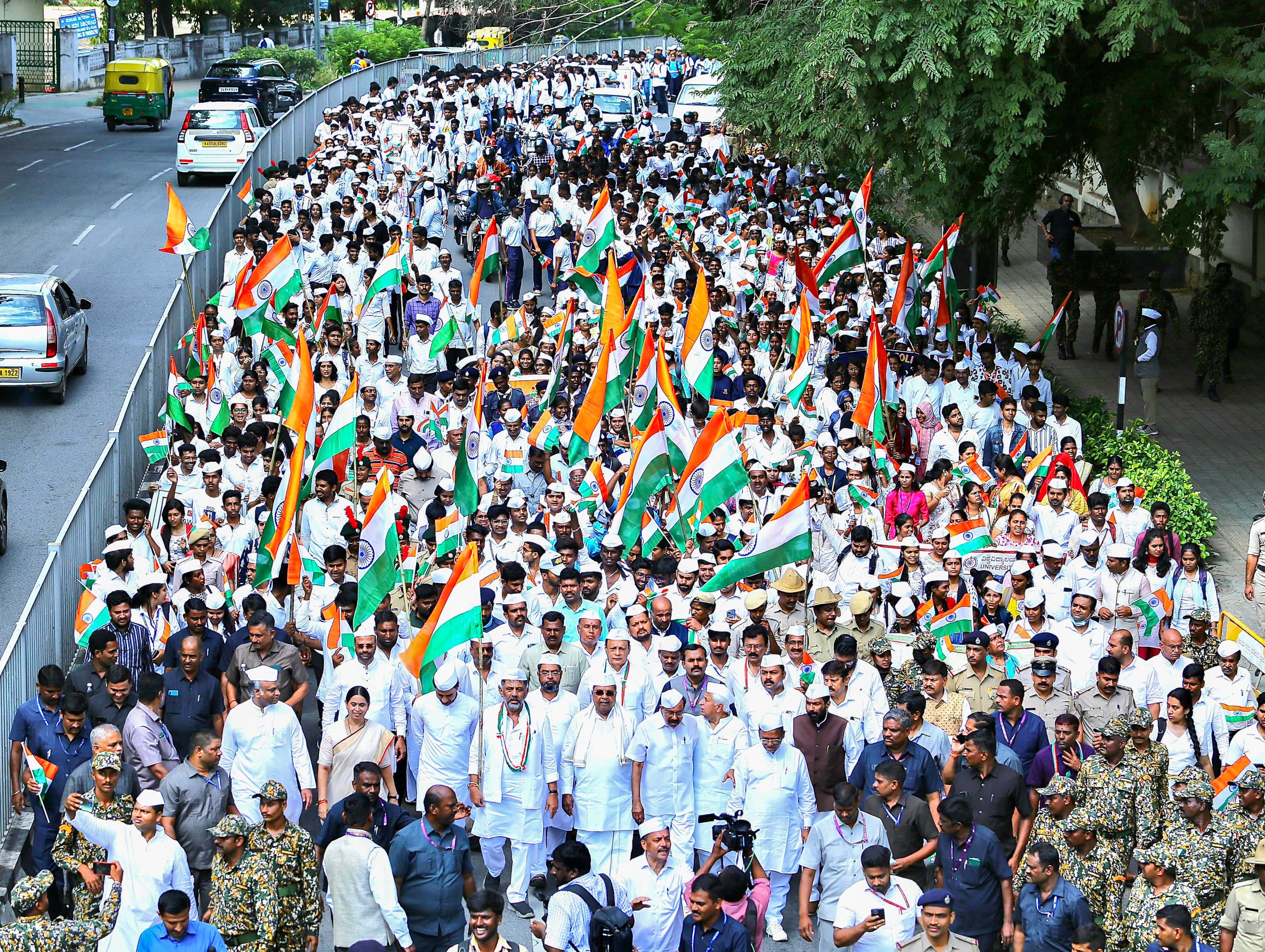 ನಂತರ ‘ಗಾಂಧಿ ನಡಿಗೆ’ ಪಾದಯಾತ್ರೆ ಮೂಲಕ ವಿಧಾನಸೌಧಕ್ಕೆ ತೆರಳಿ ಮಹಾತ್ಮ ಗಾಂಧಿ ಅವರ ಹಾಗೂ ಮಾಜಿ ಪ್ರಧಾನಿ ಲಾಲ್ ಬಹದ್ದೂರ್ ಶಾಸ್ತ್ರಿ ಅವರ ಭಾವಚಿತ್ರಕ್ಕೆ ಪುಷ್ಪ ನಮನ ಸಲ್ಲಿಸಲಾಯಿತು.