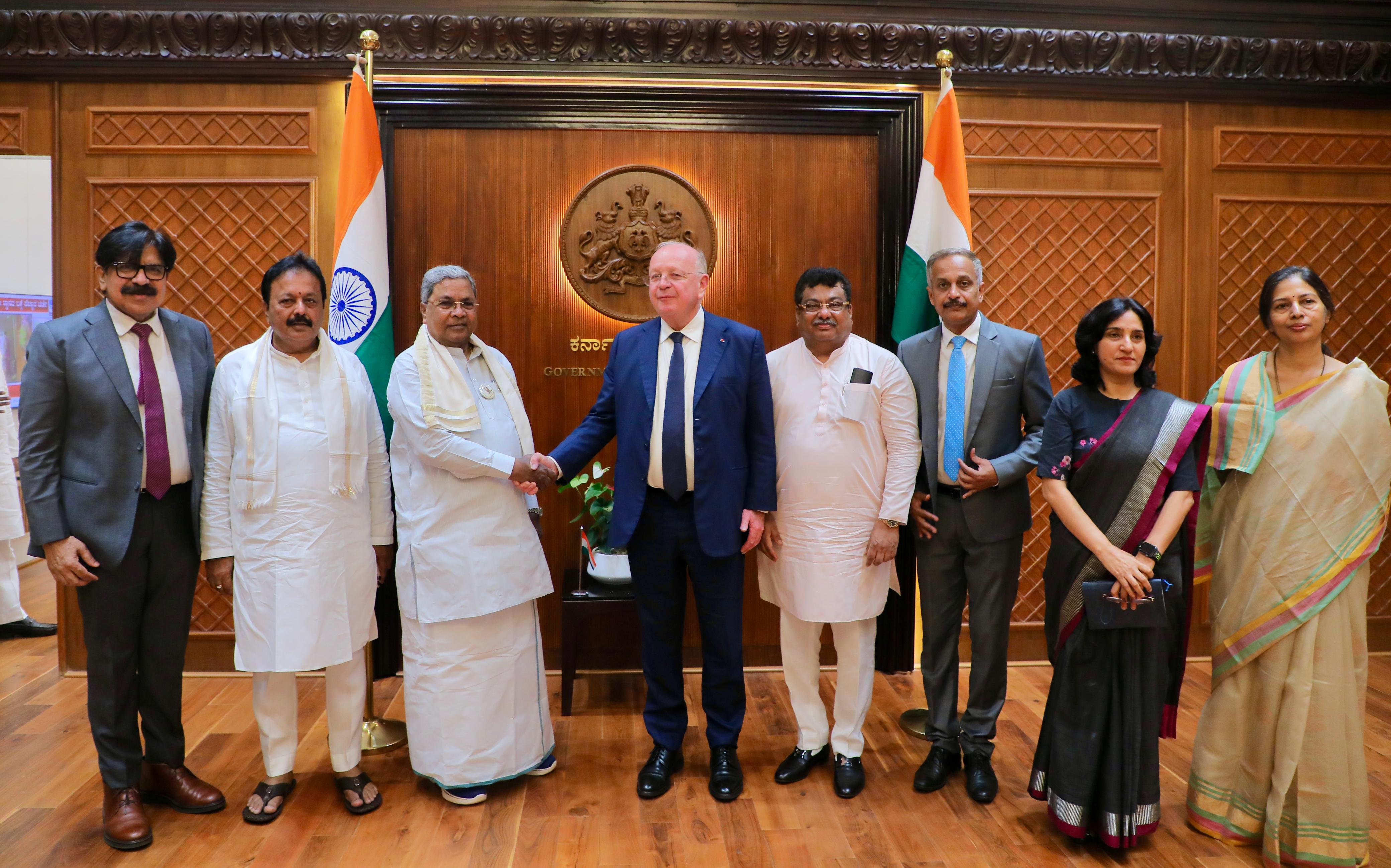 ಈ ಸೌಜನ್ಯದ ಭೇಟಿ ಸಂದರ್ಭದಲ್ಲಿ ಬೃಹತ್ ಮತ್ತು ಮಧ್ಯಮ ಕೈಗಾರಿಕಾ ಸಚಿವ ಎಂ ಬಿ ಪಾಟೀಲ ಕೂಡ ಉಪಸ್ಥಿತರಿದ್ದರು.