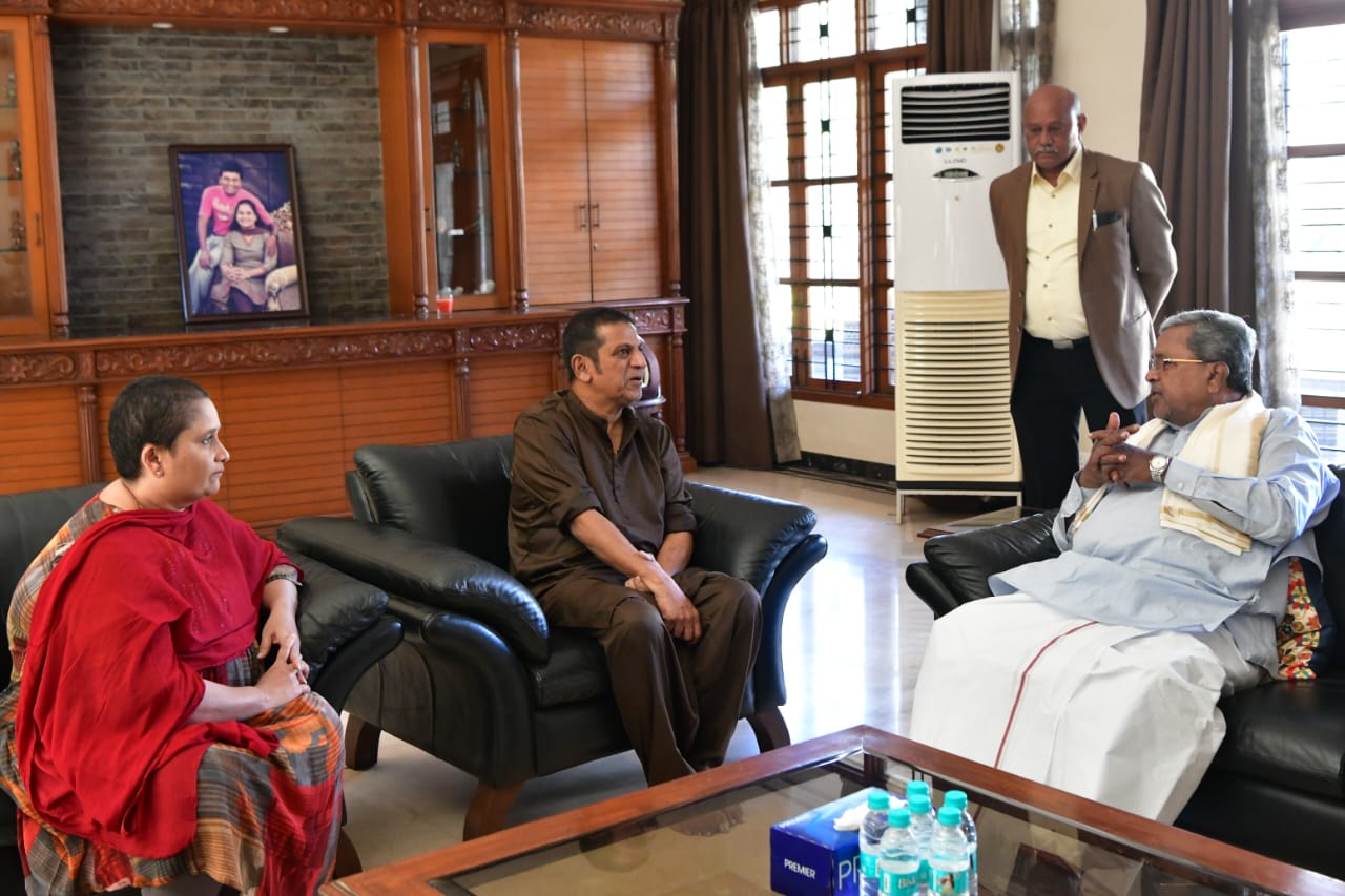 ಮುಖ್ಯಮಂತ್ರಿ ಸಿದ್ದರಾಮಯ್ಯ ಚಿತ್ರ ನಟ ಶಿವರಾಜಕುಮಾರ್ ಅವರ ನಿವಾಸಕ್ಕೆ ಭೇಟಿ ನೀಡಿ ಆರೋಗ್ಯ ವಿಚಾರಿಸಿದರು.