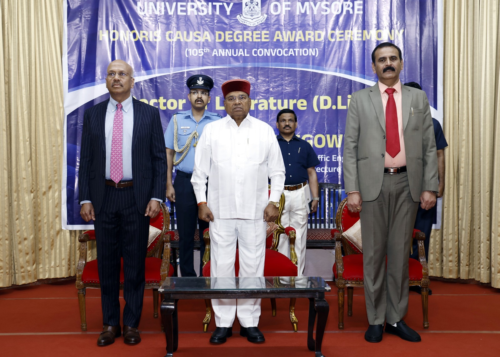 ಮೈಸೂರು ವಿಶ್ವವಿದ್ಯಾಲಯದ ವತಿಯಿಂದ ಬಾಬು ಕೆ ವೀರೇಗೌಡ ಅವರಿಗೆ ನೀಡಲಾಗಿರುವ ಗೌರವ ಡಾಕ್ಟರೇಟ್ ಅನ್ನು ರಾಜಭವನದ ಬಾಂಕ್ವೆಟ್ ಸಭಾಂಗಣದಲ್ಲಿ ನಡೆದ ಸಮಾರಂಭದಲ್ಲಿ ಕರ್ನಾಟಕದ ಗೌರವಾನ್ವಿತ ರಾಜ್ಯಪಾಲರಾದ ಶ್ರೀ ಥಾವರ್ ಚಂದ್ ಗೆಹ್ಲೋಟ್ ಅವರು ಪ್ರದಾನ ಮಾಡಿದರು.