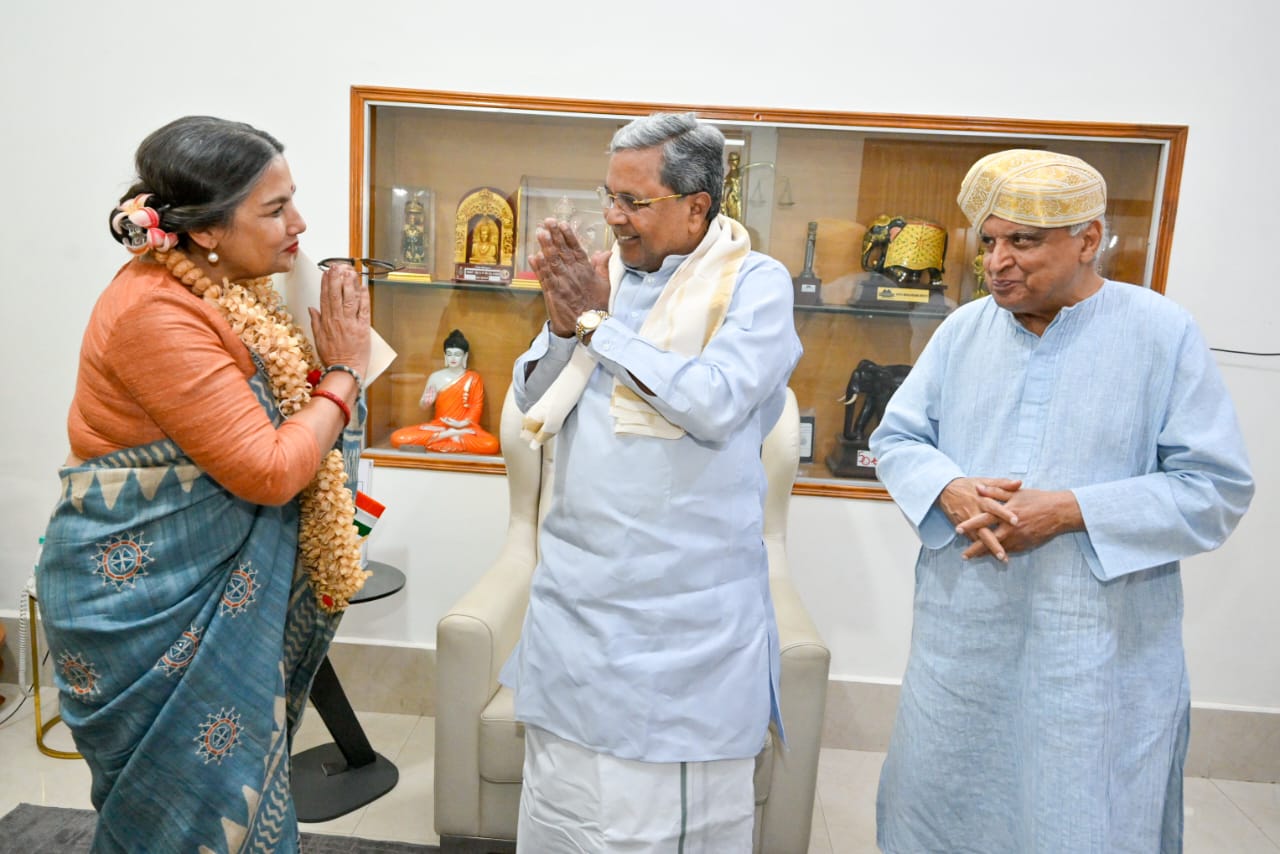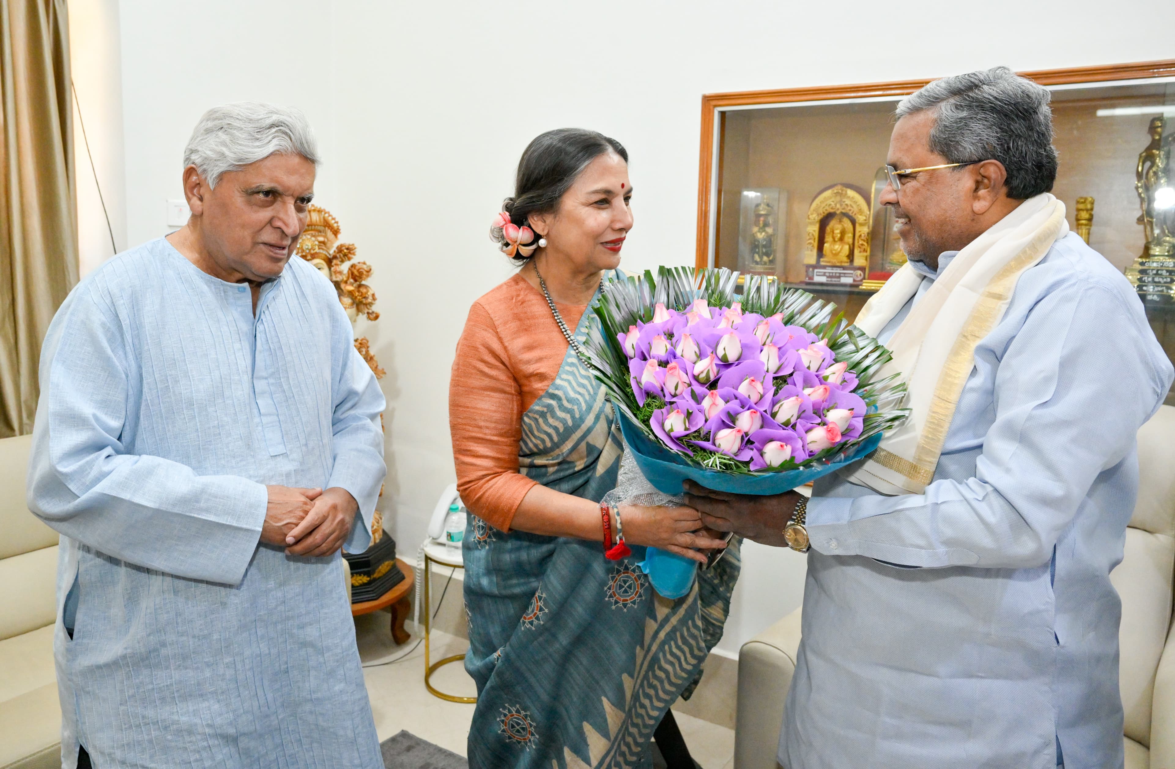 ಭಾರತೀಯ ಚಿತ್ರರಂಗದ ಮೇರು ನಟಿ, ಬಹುಭಾಷಾ ಕಲಾವಿದೆ ಶ್ರೀಮತಿ ಶಬಾನಾ ಆಜ್ಮಿ ಅವರಿಗೆ ಮುಖ್ಯಮಂತ್ರಿ ಸಿದ್ದರಾಮಯ್ಯ ಅವರು ಕಾವೇರಿ ನಿವಾಸದಲ್ಲಿ ನೀಡಿ ಗೌರವಿಸಿದರು. ಪ್ರಶಸ್ತಿ ಮತ್ತು 10 ಲಕ್ಷದ ಚೆಕ್ ನೀಡಲಾಯಿತು.