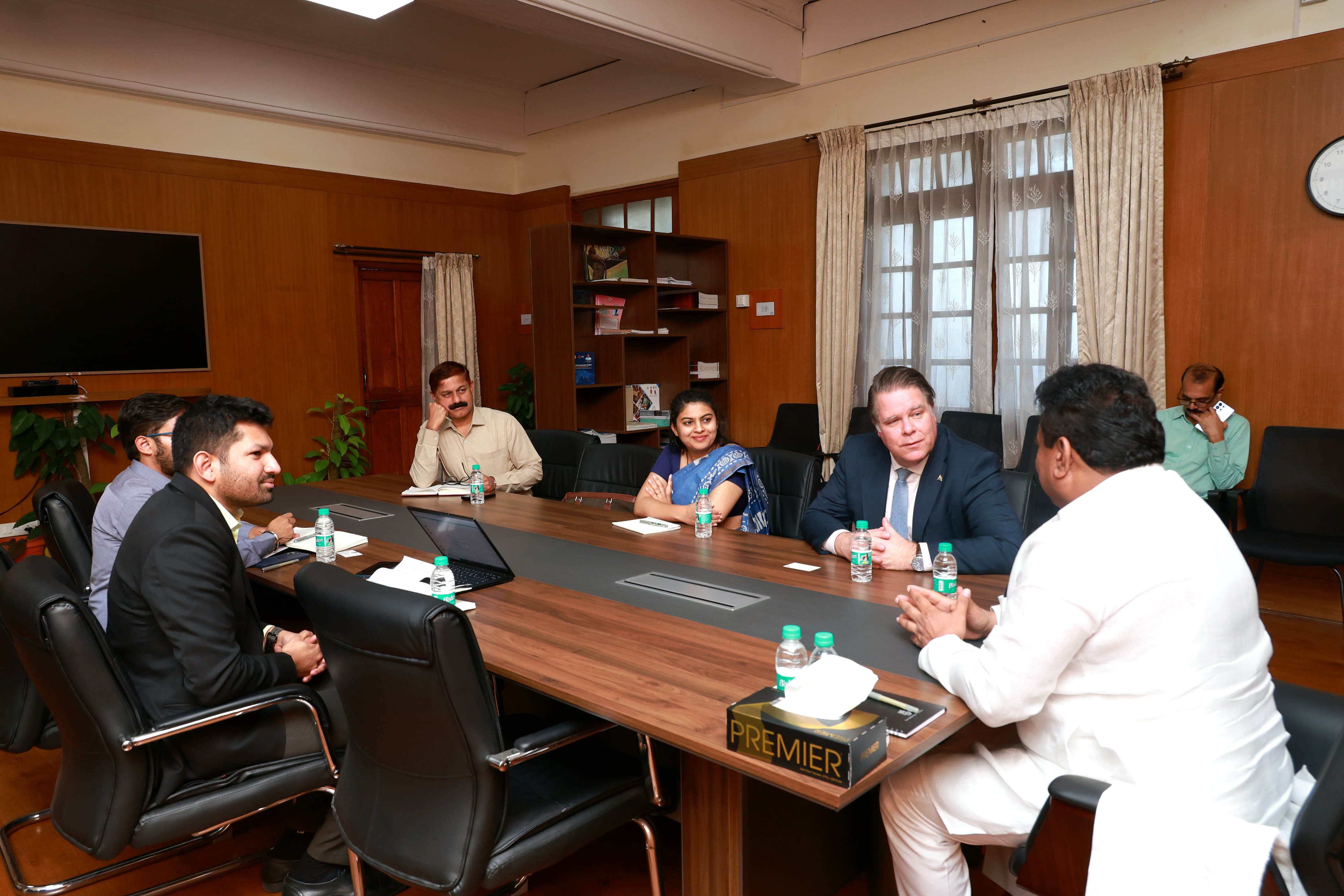 ಅವರು ಗುರುವಾರ ವಿಧಾನಸೌಧದಲ್ಲಿ ಬೃಹತ್ ಮತ್ತು ಮಧ್ಯಮ ಕೈಗಾರಿಕಾ ಸಚಿವ ಎಂ ಬಿ ಪಾಟೀಲ ಅವರನ್ನು ಭೇಟಿ ಮಾಡಿ, ವಿಚಾರ ವಿನಿಮಯ ಮಾಡಿಕೊಂಡರು.